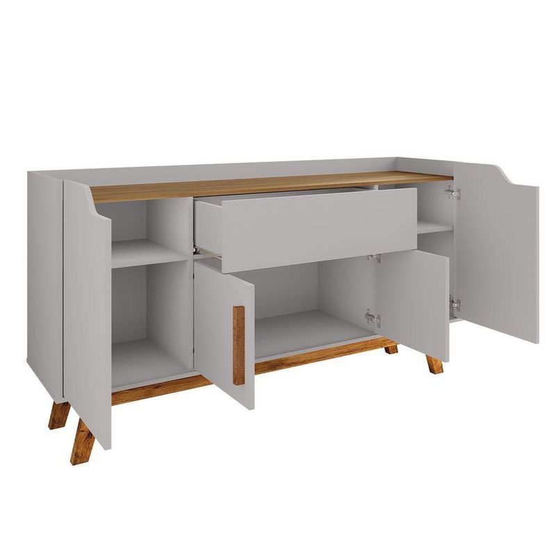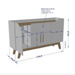 Aparador Buffet Future Off-white Com Cinamomo - BecharaCom design moderno e funcional, o Aparador Buffet Future é a peça ideal para quem busca praticidade aliada à elegância. Seu visual clean combina corpo liso com pés em madeira, criando um contraste sofisticado que valoriza qualquer ambiente seja sala de jantar, sala de estar ou área gourmet.Na parte superior, o tampo amplo é perfeito para apoiar itens decorativos, vasos, bandejas, aparelhos de jantar ou o que fizer parte da sua rotina. Na área inferior, o modelo oferece quatro portas bem distribuídas e uma gaveta discreta, garantindo excelente capacidade de armazenamento para utensílios, louças, toalhas, jogos americanos ou até documentos.O design minimalista sem puxadores externos reforça o estilo contemporâneo, enquanto o detalhe usinado na borda superior das portas confere um toque de personalidade única. É uma peça leve visualmente, versátil e fácil de combinar em diferentes propostas de decoração.Dimensões:Altura: 81,5 cmLargura: 136 cmProfundidade: 36 cmObservações:- Visual clean e elegante, sem puxadores aparentes- Pés em madeira, trazendo resistência e charme ao conjunto- Quatro portas e uma gaveta para excelente organização- Tampo espaçoso para decoração ou uso funcional- Ideal para salas de jantar, estar ou ambientes integrados