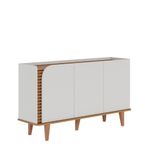 Aparador Buffet Jurere 136cm 3 Portas De Giro - Ssx Multicoisas Cor Off White Matte/freijoBuffet JurerêDeslumbre-se com o Buffet Jurerê, uma fusão perfeita de design retrô e contemporâneo, evidenciado pelos seus 05 pés de madeira maciça e linhas orgânicas. Destaca-se pelos apliques ripados com 20mm de profundidade, realçados pela porta de quina usinada.O tampo amadeirado, elegantemente recuado, proporciona a sensação de uma bandeja, definindo o caráter único deste buffet. Sua base com quinas arredondadas adiciona um toque suave à estrutura. Com 03 portas de giro, o interior revela prateleiras reforçadas, perfeitas para a organização de louças.Especificações do ProdutoMaterial do produto: MDP 15mm, MDP 12mm, MDF 15mm, HDF 3mm;Sistema de montagem: Kit de ferragens e manual de montagem;Instruções de Limpeza: Limpar utilizando apenas um pano umedecido com água, nunca utilizar abrasivos ou esponjas de aço.DimensõesLargura: 136 cmAltura: 79,2 cmProfundidade: 39,3 cmPeso: 35 kg