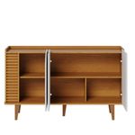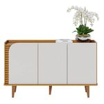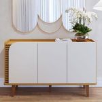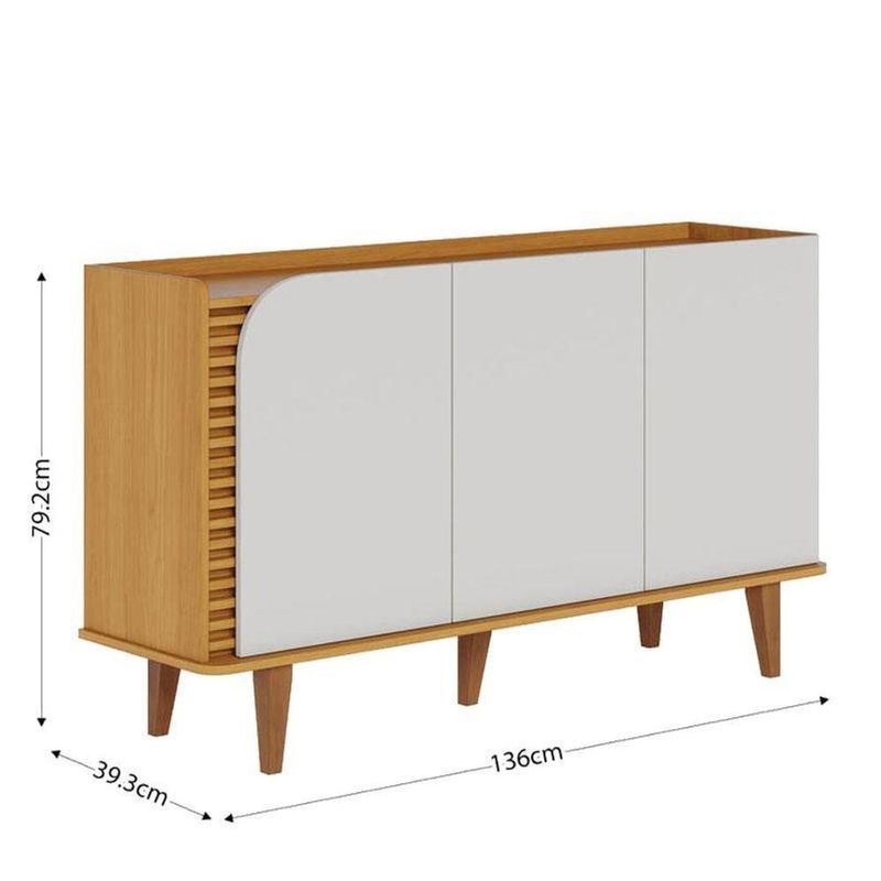 Aparador Buffet Jurerê Naturale Off White Matte - ColibriAparador Buffet Jurerê Naturale Off White Matte - ColibriApresentamos o Aparador Buffet da linha Jurerê, com um design retrô e contemporâneo, desenvolvido com materiais de alta qualidade MDP/MDF. Seus pés em madeira maciça e linhas orgânicas dando estabilidade para seu móvel e aquele toque de sofisticação. Possui duas portas, duas prateleiras internas reforçadas para organização dos seus utensílios domésticos. Três portas giro equipadas dobradiças metálicas. Seu detalhe destaca-se pelos aplique ripados nas portas realçando elegância. Seu tampo amadeirado recuado proporciona sensação de uma bandeja, uma ótima opção para exibir seus objetos ou até mesmo servir refeições. Seja para sua sala de jantar, ou sala de estar, será a escolha ideal para deixar sem ambiente mais aconchegante! Para você que procura funcionalidade, praticidade e beleza! Adquira já o seu!Características Técnicas:- Produzido em MDP/MDF- Pintura na cor Naturale / Off White Matte- Acabamento em UV fosco- Possui 3 portas giro- Possui 2 prateleiras- Possui 5 pés em madeira maciça- Design retrôDimensões:Altura: 79,2 cmLargura : 136 cmProfundidade: 39,3 cmInformações importantes:*Não realizamos a montagem ou instalação do produto, porém acompanha manual de instruções.*Toda mercadoria segue segurada contra qualquer sinistro, em caso de anormalidade, recuse.*As caixas ou pacotes possuem identificação com o nome, cidade e quantidades de volumes relativos à compra para conferencia do recebedor.