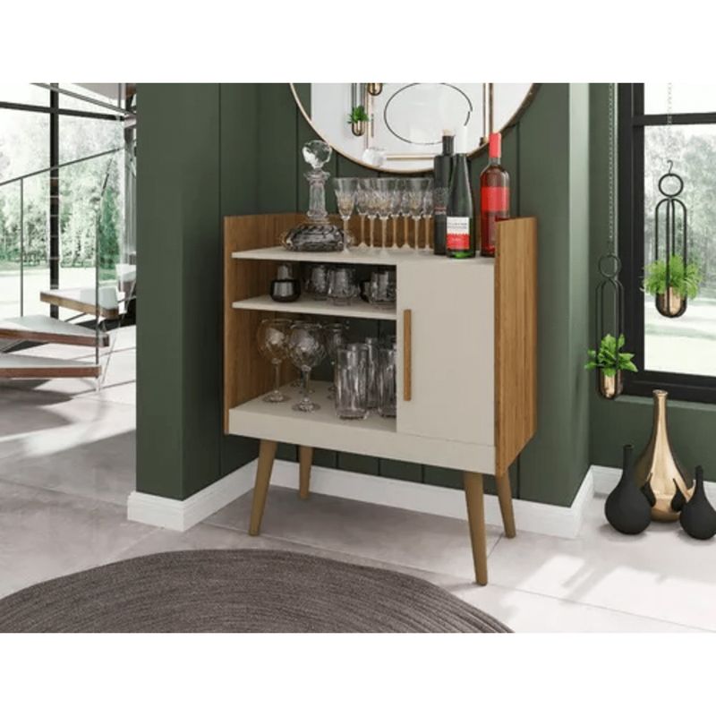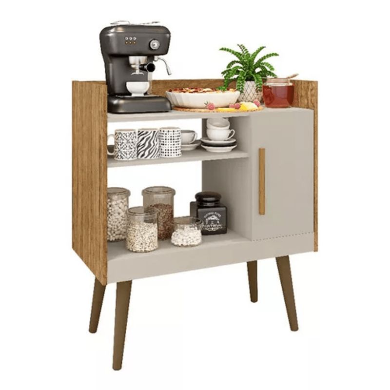O Aparador Cantinho do Café II traz características de um móvel Retrô, e é indicado pra você que sempre quis ter um espaço especial e aconchegante para receber suas visitas ou clientes. Mais um produto da Móveis Bechara, com designer atual, compacto e funcional, é indicado para pequenos espaços. Com ele você pode deixar o ambiente da sua casa ou escritório de cara nova. Produzido em MDP e pés em madeira maciça, possui 1 porta com dobradiças metálicas e puxador revestido em MDF, 2 prateleiras e 2 nichos, ideais para adaptar xícaras, cafeteiras, condimentos, potiches ou objetos de decoração conforme sua necessidade e criatividade. É possível acomodar garrafas de bebida em pé em seu espaço interno. Características: - Estrutura de MDP - Amplos Nichos - Pés de madeira maciça - Decora e organiza sem tomar muito espaço - *Itens também vendidos separadamente* Dimensões do produto Montado: - Altura: 80,0m - Largura: 70,4cm - Profundidade: 36,0cm Observações: - Os objetos que ambientam a foto não acompanham o produto - Produto acompanha manual de montagem, analise a complexidade antes de decidir montar por conta própria. Recomendamos sempre a contratação de um profissional. - Tenha atenção, as cores podem variar de acordo com a luz do monitor/tela utilizado. - Caso o produto for apresentado com a embalagem violada, orientamos que seja realizado a recusa da mercadoria e feito contato de imediato com o SAC. A Lika Magazine aguarda sua compra.