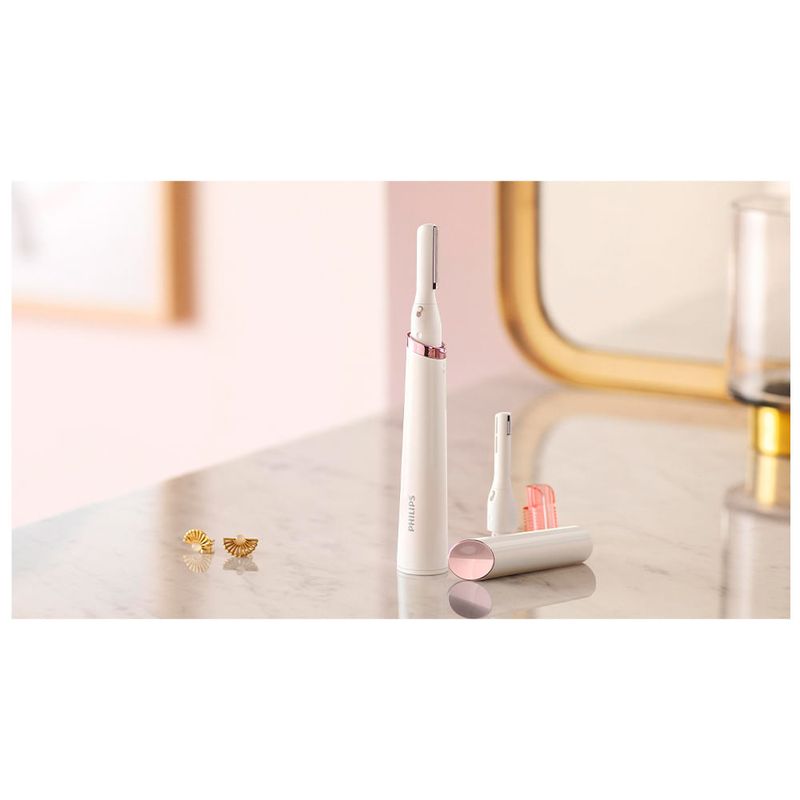 Destaques Descrição BreveAparador facial feminino, que torna prático e fácil remover os pelos mais finos do corpo com cabeça aparadora de 26mm e do rosto com cabeça raspadora de 8mm, que contém pentes de 2mm e 4mm para aparar a sobrancelha. Modelo compacto, permite que você se mantenha impecável em todos os lugares. Possui 2 anos de garantia. Descrição ComercialAparador portátil de pelos faciais Philips para retoques rápidos, apara suavemente os pelos mais finos do seu rosto, onde quer que você esteja. Ele vem com duas cabeças, uma aparadora e cabeça raspadora, contém 2 pentes para modelar a sobrancelha e uma escova de limpeza para maior higiene. Modelo compacto, permite que você se mantenha impecável em todos os lugares. Acessório de Retoque para o Corpo A cabeça aparadora de 26mm para o corpo é ideal para retoques rápidos em qualquer lugar e garante um uso rápido e fácil em pequenas áreas do corpo (por exemplo, dedos dos pés, joelho). Acessório de Precisão para o RostoA cabeça aparadora de 8mm para rosto é ótima para retoques rápidos em qualquer lugar e garante uma aplicação rápida e precisa em qualquer área do rosto. Modelador de SobrancelhasCom 2 opções de comprimento, 2mm e 4mm, para aparar os pelos no comprimento exato que você deseja. Basta encaixar o pente na cabeça de corte para obter um resultado preciso e uniforme na sobrancelha. Compacto e PortátilO design compacto e leve o torna ideal para um retoque rápido onde quer que você esteja. Pronto para uso, com uma pilha AAA incluída. 2 Anos de Garantia A Philips confia tanto na qualidade e durabilidade dos seus produtos, que entrega aos seus consumidores uma das maiores garantias do mercado. Características Tipo: Aparador de PelosVelocidades: 01Quantidade de Lâmina/Pente: 1 Aparador de pelos, 1 Cabeça aparadora, 1 Cabeça raspadora, 2 pentes aparadores, 1 manual do usuário, 1 pente de limpeza, 1 pilha AAA.Portátil Recarregável Uso/Operação: Sem Fio Especificações TécnicasModelo: HP638900Alimentação: Pilha AAA BivoltVoltagem: BivoltCor: Branco PérolaEAN: 8710103936428Garantia: 24 meses Dimensões e PesoDimensões do produto sem embalagem (AxLxP): 182x83x24 mmDimensões do produto com embalagem (AxLxP): 182x83x24 mmPeso do produto sem embalagem: 0,54 KgPeso do produto com embalagem: 0,76 Kg Itens Inclusos01 Aparador de pelos01 Cabeça aparadora01 Cabeça raspadora02 Pentes aparadores 01 Manual do usuário01 Pente de limpeza 01 Pilha AAA