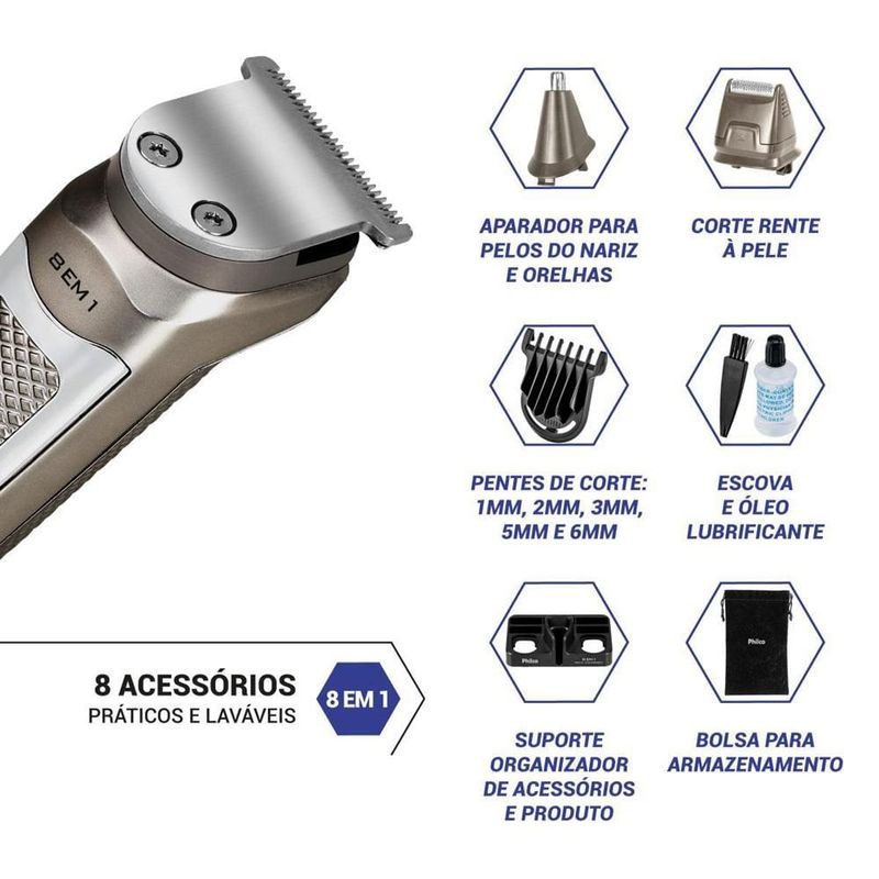 Aparador de Pelos Philco PAP16 Multigroom 8 em 1 Bivolt - Chumbo