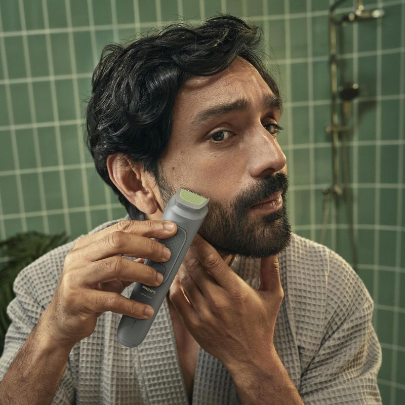 O Multigroom MG3911/15 da Philips é o aparador multifuncional ideal para quem busca versatilidade, durabilidade e praticidade no cuidado pessoal. Com 7 acessórios e lâminas autoafiáveis em aço inoxidável, ele garante cortes precisos e proteção contra irritações, sem necessidade de lubrificação.O design ergonômico e os pentes ajustáveis permitem aparar pelos do rosto, corpo e cabelo com conforto. Inclui aparador para nariz e orelhas, além de pentes para áreas íntimas e barba em diferentes comprimentos (de 1 mm a 5 mm).Com uso sem fio, oferece até 60 minutos de autonomia após 8 horas de carga. O visor em LED informa o status da bateria, garantindo que você esteja sempre pronto para o próximo uso.Todos os acessórios são laváveis, facilitando a limpeza com água corrente. Acompanha escova de limpeza, cabo USB-A (sem adaptador) e é bivolt, com bateria Ni-MH.Com 5 anos de garantia e 90 dias para testar, o MG3911/15 reforça a confiança da Philips na qualidade de seus produtos. Philips é a marca nº1 em aparadores de pelo no mundo.Aproveite e conheça mais produtos para cuidar da sua pele e deixe seu momento de auto cuidado completo!