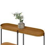 Com uma combinação perfeita entre aço, couro e cores sóbrias, o Aparador Para Sala de Estar Jantar Industrial Sintético Caramelo Nord L05 Nature Preto - Lyam Decor nos traz a proposta de um ambiente fluído entre a imponência do estilo industrial e a suavidade aconchegante de seus traços curvos. O tampo com acabamento em couro ecológico tem sua costura aparente como destaque, enriquece grandemente a peça, bem como sua estrutura na cor preto. Pode ser disposto em sala de estar ou espera, jantar, hall de entrada e recepção. Ele com certeza transformará sua decoração, com elegância e modernidade. Garanta já o seu! Dimensões do produto (L x A x P) 139 x 79 x 37 cm Medias internas: Altura da borda em Couro: 7 cm Largura do tampo: 135 e 136 cm Profundidade do tampo: 33 e 34 cm Altura da prateleira ao tampo: 54 cm Altura do chão à prateleira: 16 cm Características: Tampo e prateleira em MDP/MDF 18mm. Borda de Couro ecológico na cor caramelo. Estrutura em aço, na cor preto. Produto na cor Nature com acabamento fosco. Tampo e prateleira suportam até 3 kg distribuídos cada. - Produto entregue desmontado, acompanha manual de montagem. Sistema de montagem: cavilhas, parafusos e minifix. - Este produto deve ser limpo com pano macio e seco. Não utilize produtos abrasivos como álcool e detergente, assim como esponjas rígidas ou palha de aço. - Proteja a superfície do móvel de objetos que transmitam calor ou umidade. Observações importantes: - Produto para uso residencial em ambiente interno, não devendo ficar exposto diretamente ao sol, calor e umidade excessivos. - Pode haver alguma diferença de tonalidade entre a imagem e o produto real, por conta do tratamento de imagens e a calibração de cores do seu monitor. - As imagens são meramente ilustrativas, não acompanham objetos de decoração e eletrônicos. - Ao receber a mercadoria, o cliente deve verificar as condições da embalagem, caso haja alguma avaria não assine o comprovante de recebimento e entre em contato com nossa loja para orientações. - Montagem, desmontagem e outras instalações serão de responsabilidade do cliente. Não nos responsabilizamos, no ato da entrega, por subir escadas/elevadores ou pelo transporte por guincho em apartamentos. Eventuais despesas são de responsabilidade do comprador. - Confira as dimensões do produto e certifique-se de que passará normalmente por supostos elevadores, portas, escadas e/ou corredores de sua residência.