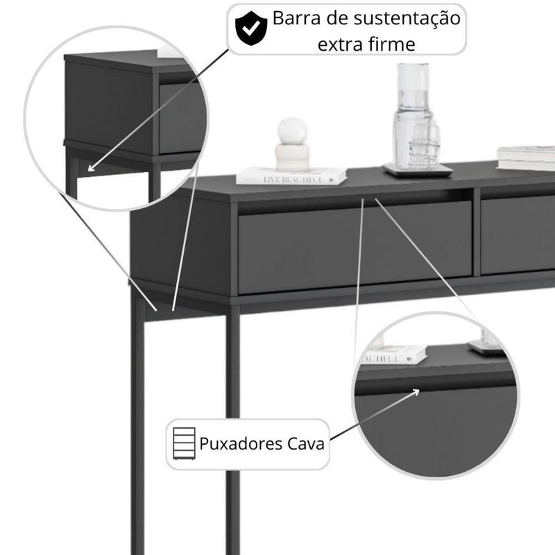 Aparador Moderno Estilo Industrial Com Base Metal 2 Gavetas - Preto PretoO Novo Aparador é combina perfeitamente com diversosambientes de sua casa ou empresa. Sala de estar, Sala de visita, Hall deentrada, recepção entre outro.Com seu charme industrial, dá um toque de modernidade e elegância ao ambiente.Feito em MDF/MDP com acabamento bordas em ABS e estrutura em Aço Premium de Alta Qualidade de 20 x 20mm com pintura EPOXI UV nas cores Preto, Cobre eDourado.Medidas do Aparador:Altura: 87 cm **(( Mais alto e imponente que a média do mercado ))Largura: 90 cmProfundidade: 37 cmMedidas Interna de cada Gaveta:Altura: 9 cmLargura: 37 cmProfundidade: 31 cmInformações do Aparador:Estrutura em Aço super-resistenteBarra de Sustentação Extra Firme garantindo que a peça nao balanceSuporta até 21 kg DistribuídosGavetas: Sim (2)Puxador Cava moderno. discreto e funcionalSuporta até 7,5 kg em cada gavetaPrateleiras: SimMaterial Principal: MDP 15mmCores Disponíveis:PRETO/OUROPRETO/COBREPRETO ONIXBRANCO/OUROBRANCO/COBREBRANCOMONTANAAFFARAItens Inclusos:1 AparadorManual de InstruçõesKit completo para montagemGarantia: 3 meses contra defeito de fabricaçãoInformações Adicionais:Fotos meramente ilustrativas do produto no ambiente.Os objetos que ambientam as fotos não acompanham o produto;Verificar descrição e tamanho do produto antes da compra.Avaliar a mercadoria no ato do recebimento e recuse em caso de divergência ou avarias.Mantenha as informações de contato e endereço de entrega atualizados para entrarmos em contato caso necessário.Limpar com flanela ou pano macio seco, não utilizar produtos abrasivos, desengordurantes, álcool ou solvente. Não expor o produto diretamente à luz solar e à umidade.Apesar de simples, sugerimos a contratação de um montador profissional para a montagem do produto. Não nos responsabilizamos por avarias causadas no ato da montagem.Não nos responsabilizamos pela montagem e desmontagem do produto no ato da entrega e devolução, assim como os custos gerados nestas situações.A transportadora entregará o produto no andar térreo do endereço de entrega.Aparador IndustrialModernoBuffet Sala de EstarAparador com PrateleirasAparador BuffetAparador MadeiraAparador MDF MDPAparador com PortasAparador DecorativoAparador ModernoAparador RetrôAparador PretoAparador BrancoPés douradoCopaAparador Sala JantarSala de estarRecepçãoConsultórioBase de metalHall de entradaBalcãoLinha premiumLinha alto padrãoCantinho do caféÁrea GourmetSala de visita Comprimento: 87 cm | Largura: 110 cm | Inclui manual de montagem: Sim | Requer montagem: Sim | Profundidade: 37 cm | Quantidade de caixas de embalagem: 1 | Modelo: Aparador Buffet Industrial | Marca: Casa H Cor: Preto