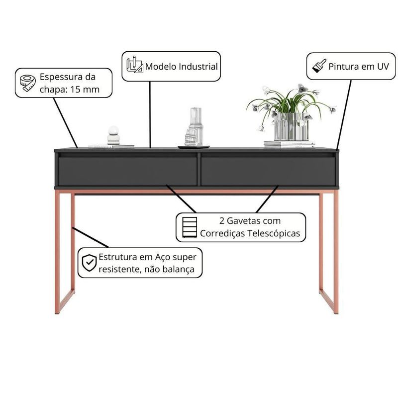 Aparador Pés Em Metal Moderno Estilo Industrial - Preto Cobre Preto CobreEsse Aparador é perfeito para a sua sala de jantar ou de estar, com seu charme industrial para a renovação do seu ambiente elegante e moderno.Feito em MDP com acabamento bordas em ABS. Estrutura em aço com pintura EPOXI nas cores preto.2 GavetasMedidas do Aparador:Altura: 87 cmLargura: 110 cmProfundidade: 37 cmMedidas Interna das Gavetas:Altura: 14 cmLargura: 41 cmProfundidade: 34 cmInformações do Aparador:Estrutura em Aço super resistenteBarra de Sutentação, Extra FirmeSuporta Até 20 KG DistribuídosGavetas: Sim (2), Suporta até 7,5 KGPrateleiras: SimMaterial Principal:MDP 15mmTampo SuperiorCores Disponíveis:PRETO/OUROPRETO/COBREPRETO ONIXBRANCO/OUROBRANCO/COBREBRANCOMONTANAAFFARAItens Inclusos:1 AparadorManual de MontagemKit completo para montagem e manual de instruçõesGarantia:3 meses contra defeito de fabricaçãoInformações Adicionais:- Fotos meramente ilustrativas do produto no ambiente.- Os objetos que ambientam as fotos não acompanham o produto;- Verificar descrição e tamanho do produto antes da compra.- Avaliar a mercadoria no ato do recebimento e recuse em caso de divergência ou avarias.- Mantenha as informações de contato e endereço de entrega atualizados para entrarmos em contato caso necessário.- Limpar com flanela ou pano macio seco, não utilizar produtos abrasivos, desengordurantes, álcool ou solvente. Não expor o produto diretamente à luz solar e à umidade.* Sugerimos a contratação de um montador profissional para a montagem do produto. Não nos responsabilizamos por avarias causadas no ato da montagem.* Não nos responsabilizamos pela montagem e desmontagem do produto no ato da entrega e devolução, assim como os custos gerados nestas situações.* A transportadora entregará o produto no andar térreo do endereço de entrega.* Não nos responsabilizamos por subir escadas, corredores e elevadores ou transporte por guincho em apartamento Comprimento: 87 cm | Marca: Casa H | Inclui manual de montagem: Sim | Profundidade: 37 cm | Modelo: Aparador Buffet Industrial | Largura: 110 cm | Quantidade de caixas de embalagem: 1 | Requer montagem: Sim Cor: Preto Cobre