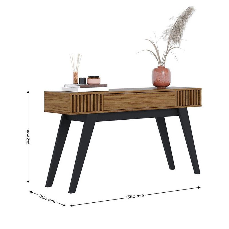 Aparador Riviera 136cm 1 Gaveta Telescópica - Ssx Multicoisas Cor Noce MilanoAparador RivieraMultifuncional e inspirado no estilo retrô, é uma ótima solução para compor ambientes de sala de estar, salas de jantar, hall de entreda ou até mesmo servir. como divisor de ambientes.Detalhes do Produto:Peças: ripadasGaveta: corrediças telescópicasPuxadores: metálico douradoPés: madeira maciçaEspecificações do ProdutoMaterial do produto: MDP 15mm, MDF 15mm, HDF 3mmSistema de montagem: Kit de ferragens e manual de montagem;Instruções de Limpeza: Limpar utilizando apenas um pano umedecido com água, nunca utilizar abrasivos ou esponjas de aço.DimensõesLargura: 136 cmAltura: 74,2 cmProfundidade: 36 cmPeso: 23,5 kg
