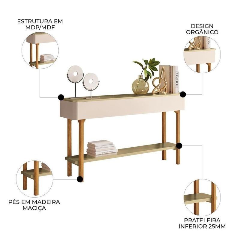 Aparador Sala De Estar 136cm Com Prateleira Janis Off/champanhe H01 - MpozenatoAparador Sala de Estar 136cm Com Prateleira Janis Off/Champanhe H01 - MpozenatoCom Design Orgânico e Cantos Arredondados, a peça traz leveza visual e sofisticação, criando um ponto de destaque elegante para composições modernas e acolhedoras. A estrutura em MDF e MDP de 15mm do Aparador garante firmeza no uso diário, enquanto o tampo oferece apoio funcional para objetos decorativos e itens do dia a dia. Os Pés em Madeira maciça possuem design exclusivo e acabamento envernizado, proporcionando estabilidade, resistência e um toque natural que valoriza o ambiente. A prateleira inferior de 25mm amplia a utilidade como Mesa De Apoio na Sala De Estar, mantendo objetos organizados com equilíbrio entre funcionalidade e estética. ESPECIFICAÇÕES Dimensões do Produto Largura: 136 cm. Altura: 77 cm. Profundidade: 31 cm. Peso: 16,5 Kg. Características do Produto Material da Estrutura: MDP e MDF. Espessura das Chapas: 15mm/25mm. Peso Suportado: 25 Kg distribuídos. Acabamento: Pintura UV. Escala de Brilho: Brilho/Fosco. Quantidade de Prateleiras: 1 Prateleira. Material dos Pés: Madeira maciça. Diferenciais: - Design orgânico. - Pés de madeira maciça. - Prateleira 25mm. Sistema de Montagem: Cavilhas/Parafusos/Minifix. Manual de Montagem: Sim. Complexidade da Montagem: Média. Volumes: 2 Volumes. Conteúdo da Embalagem: 1 Aparador Buffet. Garantia do Fabricante: 90 dias contra de fabricação. Montagem: Recomendamos que seja feita por um . Recomendação de Limpeza: Utilize pano úmido. Largura: 136 cm | Quantidade de caixas de embalagem: 2 | Comprimento: 136 cm | Marca: Mpozenato | Profundidade: 31 cm | Inclui manual de montagem: Sim | Requer montagem: Sim | Modelo: Janis | É kit: Não | Fabricante: Mpozenato | Altura: 77 cm | Produto: Aparador Sala de Estar 136cm com Prateleira Janis Off/Champanhe H01 - Mpozenato | Largura do Produto (cm): 136 | Altura do Produto (cm): 77 | Tonalidade: Bege | Profundidade do Produto (cm): 31 | Cor: Off/Champ | Peso do Produto (kg): 16.5 | Conteúdo da Embalagem: 1 Aparador Buffet | Nome ML: Aparador Sala de Estar 136cm com Prateleira Janis Off/Champ