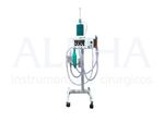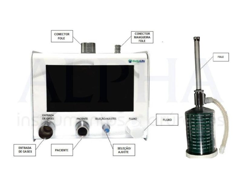 Aparelho de Anestesia Inalatória DL740 Detalhes do Aparelho de Anestesia Inalatória DL740 Sistema de Anestesia destinado à administração de gases e/ou vapores anestésicos através de respiração espontânea ou controlada, manual ou mecânica. Fabricado, em chapa de aço carbono/alumínio e pintado com tinta a pó eletrostática híbrida a produtos químicos, formado por: Módulo de ventilação e fluxo para administração de oxigênio e gases anestésicos; Opcionalmente pode ser oferecido com base de sustentação Dl740 formado por rodízios de 2" polegadas com pistas de rolagem em poliuretano para deslizamento suave e semtrepidações sendo os dianteiros com trava. Especificações Técnicas do Aparelho de Anestesia Inalatória DL740 I - Ventilador Micro Processado Digital, ciclado a tempo e limitado a volume ou ciclado a pressão, composto de Display LCD Gráfico colorido de alta definição de 7" polegadas para registro dos valores dos parâmetros ajustados e medidos, gráfico em tempo real da pressão endo traqueal, manômetro digital para registro da pressão endo traqueal do tipo Bar Graf, inclusive durante a ventilação manual além das informações de pressão de pico e informações de texto para a indicação de alarmes e modos de ventilação. A programação e ajustes são realizados por botão do tipo ’’ONE TOUCH’’, para os seguintes parâmetros: Frequência, Relação I/E, Tempo, Inspiratório, Volume, Alarme de Pressão Mínima e Alarme de Pressão Máxima. Possui ainda fole intercambiável de 1000ml e alimentação por oxigênio. II - Rotâmetro para oxigêneo com escala de 0 a 8lpm. III - Vaporizador universal de 100ml para uso com qualquer agente anestésico, de conexão rápida por um click e sem tubulação aparente, provido de câmara de vidro transparente na cor âmbar e seletor para identificação do anestésico em uso, e formado por controle de ajuste fino do borbulhamento, funil e enchimento e dreno para esvaziamento do conteúdo da câmara. IV - Saída comum de gases por bico e botão de oxigênio direto. V - Filtro Valvular completo para utilização em circuito fechado, semi-fechado e aberto, para ventilação manual, espontânea ou controlada mecânica, formado de um reservatório de fechamento rápido com a capacidade para 1000grs. de cal sodada, válvulas inspiratórias/expiratórias e válvula pop off incorporada. Acompanha circuito paciente completo, composto de traquéias de PVC e balão de látex e conector paciente com bocal giratório fabricado em polisofona. Opcionalmente pode ser oferecido com traqueias e balão de silicone. Complementam o produto extensão de 3 metros de oxigênio, cotovelo com entrada de gás pop off, válvula unidirecional e extensão da saída comum de gases. Resumo do Aparelho de Anestesia Inalatória DL740 Ventilação Micro Processada. Ajuste Digital para Pressão. Ajuste Digital para Freqüência Respiratória. Ajuste Digital de Tempo Inspiratório. Pressão Máxima Obtida pela Ventilação. Pressão Atual Pulmonar. Relação Inspiração Expiração. Possibilita Ciclar por Pressão, Volume e Tempo. Vaporizador Âmbar, ajustes para diferentes tipos de anestesicos. O sistema do Aparelho de Anestesia Inalatória DL740 deve ser enviado somente para assistência técnica autorizada da Delta Life. Veja mais equipamentos para veterinária.