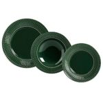 Essa linha tem como tema principal os relevos das colunas romanas, trazendo uma simetria agradável em suas formas. A linha Roma agrada desde o primeiro olhar e deixará sua mesa com um toque clássico no dia a dia. As peças podem ser levados à lava-louças, microondas e geladeira. Apresenta Efeito Celadon que ressalta os relevos e acentua detalhes e texturas, trazendo um aspecto mais natural ao produto. É produzido em Cerâmica Feldspática na cor verde escuro e serve até 6 pessoas. Beleza, elegância e bom gosto à mesa sempre.