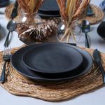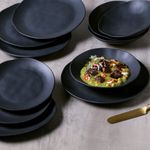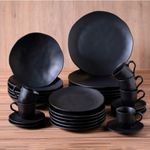 O Aparelho de Jantar 20 Peças Orgânico Preto Matte (para 4 pessoas) une a intensidade do preto ao equilíbrio das formas naturais para criar uma mesa contemporânea, elegante e marcante. Produzido em stoneware de alta resistência e queimado em alta temperatura, entrega durabilidade, robustez e um acabamento refinado para o uso diário. O matte acetinado adiciona uma textura suave e um visual sofisticado, elevando cada refeição com um toque de design. Com shape orgânico e linhas fluídas, as peças valorizam a estética minimalista e se adaptam com facilidade a diferentes composições de mesa, do moderno ao clássico. Além de bonito, é prático e versátil: pode ir ao forno (até 180 °C), micro-ondas, freezer e lava-louças com total segurança. Composição do conjunto: 4 pratos rasos Ø26,5 cm, 4 pratos fundos Ø21,2 cm (600 ml), 4 pratos de sobremesa Ø19,5 cm e 4 xícaras de café 120 ml com pires.