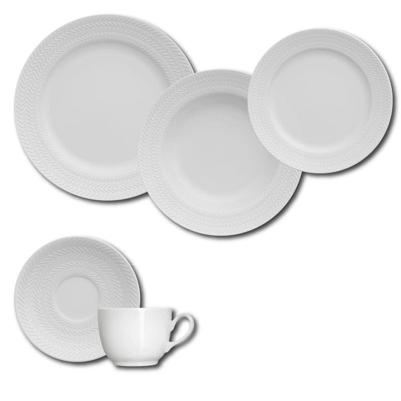 A linha Chevron, da Germer Porcelanas, alia o processo artesanal à tecnologia, trazendo uma textura marcante em alto-relevo nas peças, resultado de um minucioso trabalho digital que ganha vida nas mãos experientes de quem as fabricam. Uma belíssima inspiração, um jeito simples de compor uma mesa com mais design e beleza, valorizando seus momentos. Então aproveite para deixar as refeições do dia a dia ou em ocasiões formais ainda mais belas e elegantes com o Aparelho de Jantar Chevron de 30 Peças. São 4 serviços com pratos rasos, fundos e de sobremesa, além de xícaras e pires de chá, que servem perfeitamente até 6 pessoas. A escolha ideal para transformar momentos em família e com os amigos, deixando tudo ainda mais delicioso e inesquecível. Adquira agora mesmo e surpreenda a todos na arte de servir.