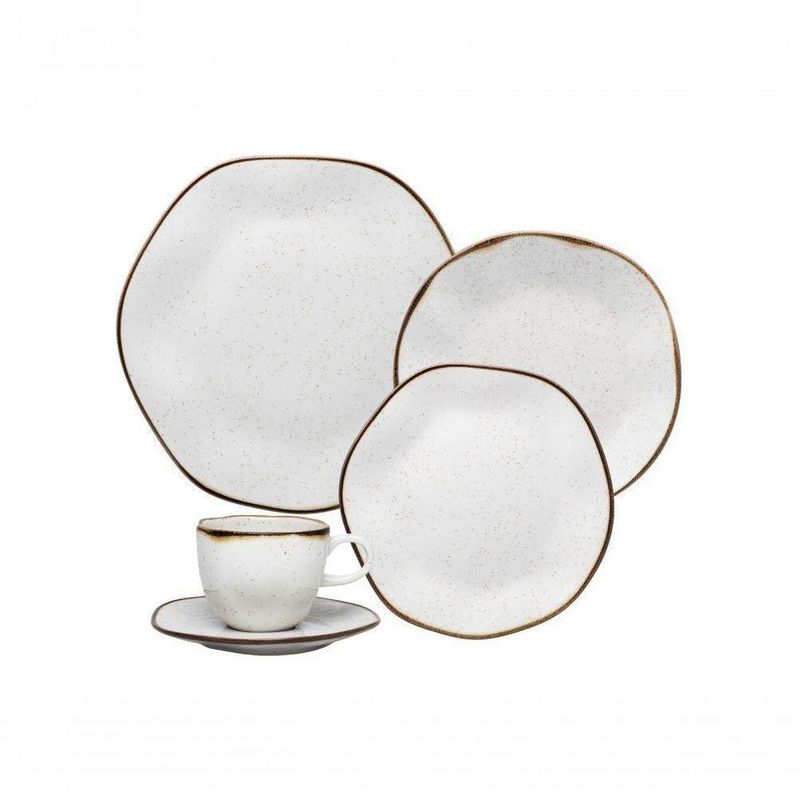 Aparelho De Jantar E Cha 20 Pecas Ryo Maresia - OxfordAparelho de Jantar e Chá 20 Peças Ryo Maresia - OxfordPara você que busca peças com design artístico único, acabamentos e desenhos exclusivos, a Oxford lançou a coleção Ryo Maresia.Com design moderno e inovador, a linha Ryo Maresia traz peças com cortes irregulares com conceito que valoriza o que é imperfeito, suas peças remetem às belezas da praias, o tom da areia e o frescor do mar. Com aplicação de esmalte com pigmentação e de um filete de reagente aplicado de forma manual, tornando cada peça ainda mais especial e única.Esse aparelho de jantar além de muito elegante, é uma ótima opção de decoração. O conjunto conta com 4 pratos rasos, 4 pratos fundos, 4 pratos de sobremesa, 4 xícaras de chá e 4 pires de chá.Atributos do Produto:Referência: 103230.Código: 103230.Código de Barras: 7891361274055.Cor: Branco/ Marrom.Garantia: 3 Meses.Marca: Oxford.Coleção: Ryo Maresia.Material: Porcelana.Decoração: Estampado.Formato: Orgânico.Observações:Resistente a microondas.Resistente à lava-louças.Design Inovador.Conteúdo da Embalagem:4 pratos rasos com 27,5 cm de diâmetro.4 pratos fundos com 22,5 cm de diâmetro 4,5 cm de altura.4 pratos para sobremesa com 21,5 cm de diâmetro.4 xícaras para chá (220 ml de capacidade) com pires (16 cm de diâmetro).Importante:Produtos de decoração não inclusos.Imagens meramente ilustrativas.As cores dos objetos podem sofrer alterações devido a luminosidade, configurações do monitor e até mesmo a percepção do usuário.