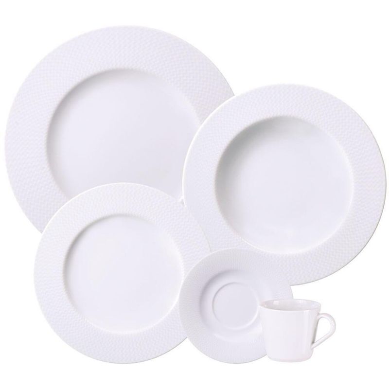 Aparelho De Jantar Tramontina Mesh Em Porcelana Decorada 20 Peças 96589028APARELHO DE JANTAR TRAMONTINA MESH EM PORCELANA DECORADA 20 PEÇAS 96589028Marca: TramontinaModelo: Mesh 20 Peças 96589/028CONTEÚDO- 4 Pires- 4 Xícaras 185 ml- 4 Pratos fundos 23 cm- 4 Pratos rasos 28 cm- 4 Pratos de sobremesas 21 cmDESCRIÇÃO DO APARELHO DE JANTAR EM PORCELANA DECORADA 20 PEÇAS- Os produtos Tramontina Porcelana completam as suas refeições e agregam muito mais beleza a sua mesa.- De porcelana Tradicional e exclusiva Tramontina, que é translúcida, tem excelente brancura e brilho, alta resistência mecânica e porosidade próxima de zero, são a escolha ideal para compor uma decoração diferenciada e cheia de estilo!INFORMAÇÕES DO APARELHO DE JANTAR EM PORCELANA DECORADA 20 PEÇAS- Fabricado em Porcelana- Coleção: Santorini- Porosidade próxima de zero, evitando a proliferação de fungos e bactérias- Serviço: 4 pessoas- Composição / Quantidade: 20 peçasORIENTAÇÕES DO APARELHO DE JANTAR EM PORCELANA DECORADA 20 PEÇAS- Ao usar o produto pela primeira vez, lavar bem a peça com esponja macia e sabão neutro;- Lavar as peças utilizando esponja macia e sabão neutro;- Não levar as peças ao forno;- Não submeter as peças a chama direta.GARANTIA- 90 dias de garantia legal para vícios ou defeitos de fabricação.PESO- 8.02 kgDIMENSÕES- Dimensões embalagem (Compr. X Larg. X Alt.): 290 x 230 x 365 mm;- Dimensões do produto (Compr. X Larg. X Alt.): 317 x 242 x 394 mm. Linha: Mesh | Quantidade de peças: 20 | Cor: Branco | Nome Do Desenho: Mesh | Tipo do jogo: Pratos | Material: Porcelana | É apto para lava-louças: Sim | É inflamável: Não | É kit: Sim | É kit de fábrica: Sim | supplier_declared_dg_hz_regulation: Não aplicável | Bullet_point0: 0 | Bullet_point1: 1 | Bullet_point2: 2 | Dias Entrega Fornecedor: 0 | Marca: Tramontina | EmbalagemLargura-cm: 28 | EmbalagemComprimento-cm: 32 | EmbalagemAltura-cm: 41 | Cubagem: 0.000000 | Modelo: Mesh 20 Peças 96589/028 | Peso Líquido: 0.0000