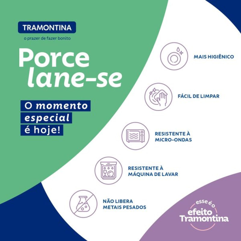 Aparelho Jantar Tramontina Sweet Color Porcelana Decorada 20 Peças Tramontina - Os produtos Tramontina Porcelana completam as suas refeições e agregam muito mais beleza a sua mesa. De porcelana Tradicional e exclusiva Tramontina, que é translúcida, tem excelente brancura e brilho, alta resistência mecânica e porosidade próxima de zero, são a escolha ideal para compor uma decoração diferenciada e cheia de estilo! Características Gerais do Produto: Garantia: • 90 dias de garantia legal para vícios ou defeitos de fabricação.