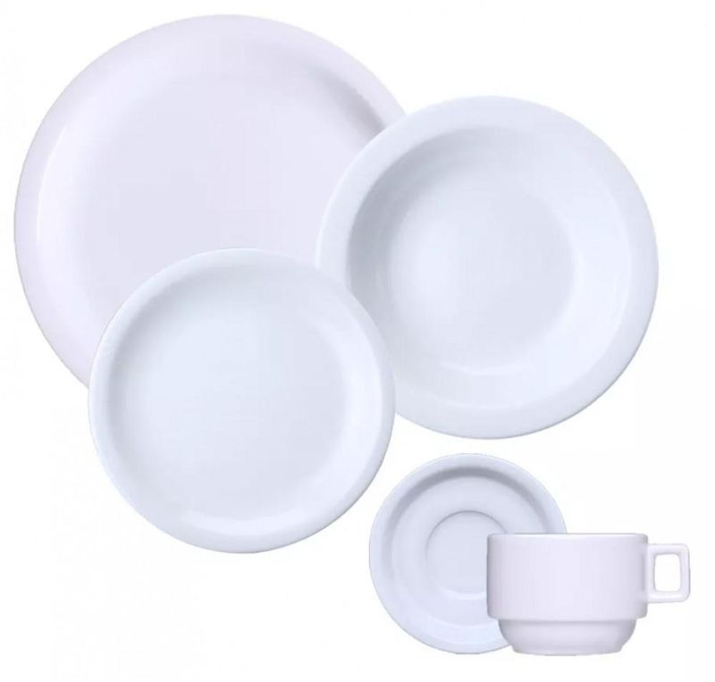 Aparelho Jogo de Jantar Chá Porcelana 30 Peças Iguaçu GermerPara uma mesa especial e cheia de estilo, o aparelho de jantar Germer Iguaçu em porcelana será o seu melhor aliado. Composto por peças com excelente brancura e brilho, ele é fabricado em porcelana tradicional e exclusiva Germer, que além dessas características, também proporciona alta resistência mecânica e porosidade próxima de zero, que evita a proliferação de fungos e bactérias. Um aparelho de jantar com design classico e atemporal, perfeito para o dia a dia. Fabricado em PorcelanaUso: Resistente a micro-ondas e lava-louçasColeção: IguaçuPorosidade próxima de zero, evitando a proliferação de fungos e bactériasServiço: 6 pessoasQuantidade: 30 peças Composicao do Jogo: - 6 Pratos Rasos: 25,5cm (diametro) - 6 Pratos Fundos: 21cm(diametro) - 6 Pratos Sobremesa: 19cm(diametro) - 6 Xicaras Cha: 210ml - 6 Pires Cha: 14,5cm(diametro)