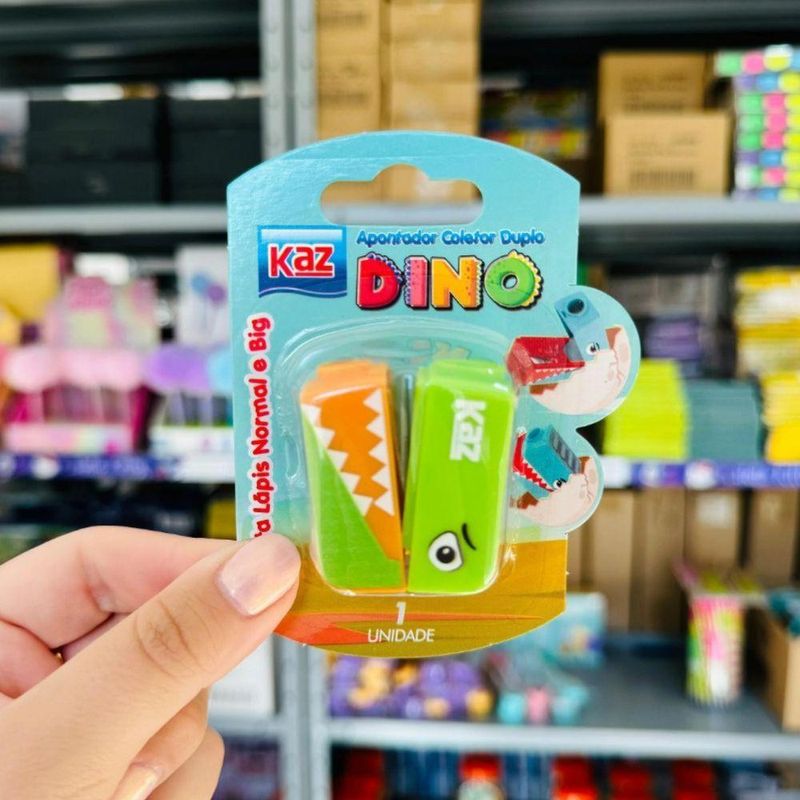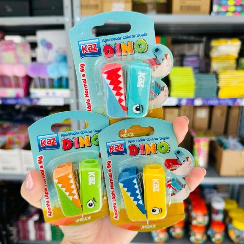 Apontador Infantil Coletor Duplo Dinossauro Kz1935bl KazApontador Coletor Duplo (2 Furos) Dino KZ1935BL Unidade – Diversão e PraticidadeTransforme a rotina de apontar lápis em um momento divertido com o Apontador Coletor 2 Furos Dino! Com design lúdico de dinossauro, ele é ideal para estudantes, artistas e profissionais que buscam funcionalidade com estilo.Detalhes do Produto:Marca: KazModelo: Apontador Escolar Dino KZ1935BLFuros: 2 (para lápis comum e lápis jumbo)Depósito: Coletor para resíduos integradosMaterial: Resina termoplástica e lâmina de aço inoxAtóxico: Seguro para o uso infantilApontador Coletor Duplo Dino KZ1935BL - UnidadeCores Disponíveis:AmareloAzul ÁguaVerdeAPÓS A COMPRA, MANDAR MENSAGEM INFORMANDO QUAL COMBINAÇÃO DE COR DESEJA. CASO TENHAMOS EM ESTOQUE, LHE ENVIAREMOS.Alguma duvida? Nossa equipe está a disposição no campo de perguntas e chat.