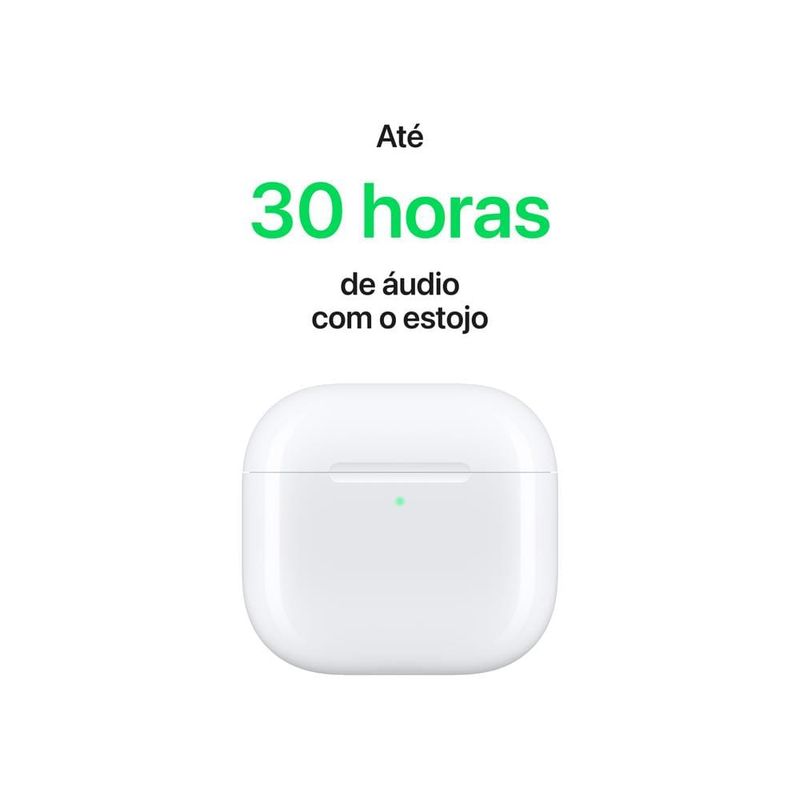 AirPods 4, uma experiência sonora completamente reinventada com Isolamento de Voz, interações com a Siri e Áudio Espacial Personalizado. E um novo encaixe para conforto o dia todo.Disponível em aparelhos compatíveis com iOS 18, iPadOS 18 ou macOS Sequoia e posterior quando emparelhados com AirPods 4, AirPods 4 com Cancelamento Ativo de Ruído ou AirPods Pro 2 com o firmware mais recente.O Áudio Espacial está disponível em conteúdo compatível de apps compatíveis. Requer iPhone com câmera TrueDepth para criação de perfil personalizado.
