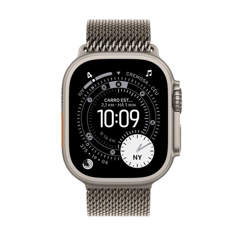Apple Watch Ultra 3 GPS + Cellular 49mm – A nova geração de smartwatch! O Apple Watch Ultra 3 GPS + Cellular 49mm combina resistência, tecnologia e desempenho incomparável para quem busca o smartwatch mais completo da Apple. Criado com caixa de Titânio Grau 5 e tela de cristal de safira, é feito para enfrentar qualquer desafio — do treino ao mergulho.TelaCom tela Retina Sempre Ativa de até 3000 nits de brilho e resolução de 422 x 514 pixels, proporciona visualização perfeita mesmo sob sol intenso. O Modo Noite e o brilho mínimo de 1 nit tornam o uso confortável em qualquer ambiente. ProcessadorEquipado com o poderoso chip S10 de 2 núcleos e Neural Engine de 4 núcleos, o Ultra 3 oferece desempenho ágil com 64 GB de capacidade e o novo watchOS, o sistema mais avançado para dispositivos wearable. Monitoramento EsportivoO Apple Watch Ultra 3 é mais que um relógio: é um verdadeiro parceiro de aventura. Monitora seus treinos com Exercícios Personalizados, com métricas detalhadas com Zonas de Batimentos Cardíacos, GPS de precisão e Potência de Corrida. eSIMO Apple Watch Ultra 3 GPS + Cellular mantém você sempre conectado às pessoas e informações mais importantes usando apenas o relógio. Com um plano de dados celulares, através da tecnologia eSIM, é possível enviar e receber mensagens, atender chamadas, acessar notificações e ouvir músicas e podcasts via Apple Music e Apple Podcasts, tudo isso sem precisar do iPhone por perto.PulseiraCom a Pulseira Milanês M, desenhada para aventuras ao ar livre e trilhas, com o visual robusto e esportivo completa um design pensado para performance e estilo em qualquer ocasião. Para pulsos de 15,5 a 18,5cm.BateriaCom até 42 horas de duração da bateria — ou até 72 horas no modo de pouca energia — e compatível com recarga rápida (0 a 80% em cerca de 45 minutos, 15 minutos para até 12 horas). Bateria de longa duração — até 42h de uso normal e 72h no modo Pouca Energia. Conectividade total com GPS dupla frequência (L1 + L5), LTE, Wi-Fi 4 e Bluetooth 5.3. Recursos de saúde e bem-estar como Oxigênio no Sangue, ECG, Sono, Batimentos e Apneia do Sono. Resistência profissional — 100m de resistência à água, IP6X contra poeira e certificação EN13319 para mergulho até 40m. Segurança avançada com detecção de quedas, acidentes graves e SOS de Emergência. Descubra mais produtos e inovações Apple e aproveite todas as novidades agora mesmo!