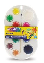 **AVISO: ESTAMOS TRABALHANDO NORMALMENTE COM TODOS ITENS COM ENVIO IMEDIATO*** Com Aquarela Acrilex você pode criar vários tons em seus desenhos.Especificações:Blocos de tintas cuja a forma os torna mais fáceis de usarCores ricas, vivas e altamente abrangentesEquipado com uma paleta de pintura cujo design evita a dispersão de águaAcompanha 1 pincel12 cores aquareláveis
