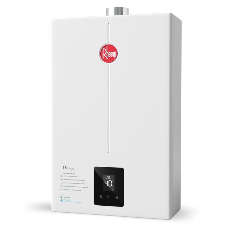 A linha de aquecedores de passagem digitais da Rheem são reconhecidos pela sua alta tecnologia.O aquecedor de passagem a gás Rheem de 15 litros GLP (Gás de botijão) é a opção ideal para uso residencial e comercial.Atende 2 pontos de consumo simultaneamente, 2 duchas de 8 l/min, conta com opção inverno/verão com ajuste de fluxo de água conforme a demanda e a estação do ano.Importante: Antes de adquirir seu equipamento, tenha certeza de que sua estrutura de água e gás são compatíveis com o a capacidade do aparelho que está sendo adquirido.Características do produto:Quantidade de temperaturas: 38°c até 65°cPressão de funcionamento: 12 m.c.aPotência: 24,9 kWRendimento sobre o p.c.s (%): 84%Comando eletrônico de temperaturas: simConsumo de gás (kg/h): 1,81Vazão de água com t 20º (l/min): 3 l/mimPressão mínima de água (mca): 2Pressão máxima de água (mca): 100Conexões para ligação do gás e água (polegada): 1/2Alimentação de energia: 127/220VConsumo de energia: 23WDiâmetro da chaminé (mm): 60mmClassificação Inmetro: ATem dispositivo de segurança: simTem seletor de temperatura: simModelo digital Material:Caixa em metálica 100 % fosfatizadaTrocador de calor em cobreVálvula de gás em alumínioConexões de entrada e saída em liga de latãoSensor de fluxo em poliamida