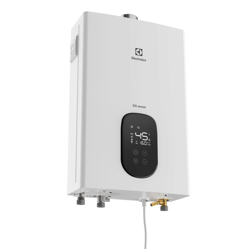 Aquecedor de Água a Gás Electrolux Exaustão Forçada 16L GN Digital Experience com CO Sensor (H16BN). Tranquilidade e conforto todos os dias, graças ao seu alto padrão de segurança, tecnologia e praticidade. A Electrolux inovou e apresenta o primeiro aquecedor de água digital com CO Sensor do Brasil¹, garantindo a segurança da sua casa e da sua família contra o gás monóxido de carbono. Ao detectar a presença do gás, o dispositivo emite alertas de luz e som e desliga automaticamente a chama para sua segurança.² Com o CO Sensor, você será avisado caso haja níveis nocivos de monóxido de carbono no ambiente através de alertas de luz e som.O Sinalizador de LED monitora continuamente o ar através de luzes, sendo: verde para quando não houver riscos, amarela para quando existir um possível risco e vermelha caso haja um risco mais elevado³. Se as luzes amarela ou vermelha forem ativadas, você também escutará um alarme sonoro, ajudando a identificar rapidamente um vazamento de gás.Ideal para diversos ambientes, inclusive aqueles com pouca ventilação. O aquecedor utiliza Exaustão Forçada, garantindo que os gases resultantes da combustão sejam eficientemente expelidos da residência por meio de um ventilador interno. No total, são 9 sistemas de segurança que colocam o cuidado com você em primeiro lugar. São sistemas que protegem sua família, sua casa e seu aparelho para que você só precise se ocupar em escolher a temperatura perfeita da água na hora de um banho quente.O Painel Digital com design moderno e intuitivo oferece mais facilidades e controle preciso de temperatura. É fácil de ver e ajustar configurações com apenas um toque. Além disso, em seu interior, possui Câmara e Serpentina 100% de Cobre, o que proporciona mais durabilidade e maior eficiência na troca de calor. O uso do cobre garante uma vida útil mais longa e uma performance superior, tornando o sistema mais confiável e eficiente.Tenha um aquecedor que liga e desliga automaticamente ao abrir ou fechar a água quente. O responsável por isso é o Sistema de Ignição Automática controlada por Microchip, que oferece, além de praticidade, muito mais controle e economia.O Aquecedor de Água a Gás Electrolux Exaustão Forçada 16L GN Digital Experience com CO Sensor (H16BN) vem com 3 anos de garantia para total tranquilidade, além de mais tecnologias que asseguram uma experiência superior.É recomendado o uso de acessórios originais Electrolux.¹Modelos em Exaustão Forçada e Painel Digital.²Detecta o monóxido de carbono no ambiente a partir de 50 ppm de CO. Desliga a chama em situação de luz vermelha. Recomenda-se a troca/manutenção do sensor a cada 4 anos.³Alerta de luz amarela detecta o monóxido de carbono no ambiente a partir de 50 ppm de CO. Alerta de luz vermelha a partir de 150 ppm de CO (valores aproximados).