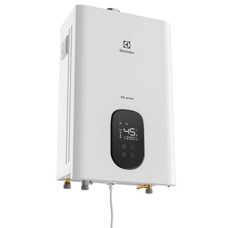 Aquecedor de Água a Gás Electrolux Exaustão Forçada 22L GLP Digital Experience com CO Sensor (H22BG). Tranquilidade e conforto todos os dias, graças ao seu alto padrão de segurança, tecnologia e praticidade. A Electrolux inovou e apresenta o primeiro aquecedor de água digital com CO Sensor do Brasil¹, garantindo a segurança da sua casa e da sua família contra o gás monóxido de carbono. Ao detectar a presença do gás, o dispositivo emite alertas de luz e som e desliga automaticamente a chama para a sua segurança². Com o CO Sensor, você será avisado caso haja níveis nocivos de monóxido de carbono no ambiente através de alertas de luz e som.O Sinalizador de LED monitora continuamente o ar através de luzes, sendo: verde para quando não houver riscos, amarela para quando existir um possível risco e vermelha caso haja um risco mais elevado³. Se as luzes amarela ou vermelha forem ativadas, você também escutará um alarme sonoro, ajudando a identificar rapidamente um vazamento de gás.Ideal para diversos ambientes, inclusive aqueles com pouca ventilação. O aquecedor utiliza Exaustão Forçada, garantindo que os gases resultantes da combustão sejam eficientemente expelidos da residência por meio de um ventilador interno. No total, são 9 sistemas de segurança que colocam o cuidado com você em primeiro lugar. São sistemas que protegem sua família, sua casa e seu aparelho para que você só precise se ocupar em escolher a temperatura perfeita da água na hora de um banho quente.O Painel Digital com design moderno e intuitivo? oferece mais facilidades e controle preciso de temperatura. É fácil ver e ajustar configurações com apenas um toque. Além disso, em seu interior, possui Câmara e Serpentina 100% de Cobre, o que proporciona mais durabilidade e maior eficiência na troca de calor. O uso do cobre garante uma vida útil mais longa e uma performance superior, tornando o sistema mais confiável e eficiente.Tenha um aquecedor que liga e desliga automaticamente ao abrir ou fechar a água quente. O responsável por isso é o Sistema de Ignição Automática controlada por Microchip, que entrega, além de praticidade, muito mais controle e economia.O Aquecedor de Água a Gás Electrolux Exaustão Forçada 22L GLP Digital Experience com CO Sensor (H22BG) vem com 3 anos de garantia para total tranquilidade, além de mais tecnologias que asseguram uma experiência superior.É recomendado o uso de acessórios originais Electrolux.¹Modelos em Exaustão Forçada e Painel Digital.²Detecta o monóxido de carbono no ambiente a partir de 50 ppm de CO. Desliga a chama em situação de luz vermelha. Recomenda-se a troca/manutenção do sensor a cada 4 anos.³Alerta de luz amarela detecta o monóxido de carbono no ambiente a partir de 50 ppm de CO. Alerta de luz vermelha a partir de 150 ppm de CO (valores aproximados).