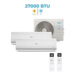 Ar Condicionado Bi Split Elgin 27000 BTUs (HW 18K+18K) Quente e Frio Inverter 220V - economia de energia e climatização inteligente em mais de um espaço ao mesmo tempoO Ar-Condicionado Bi Split Elgin 27.000 BTUs Inverter Quente e Frio 220V é a solução ideal para quem busca conforto térmico completo em diferentes ambientes, com alta eficiência energética e tecnologia avançada. Composto por duas evaporadoras de 18.000 BTUs conectadas a uma única condensadora, ele permite climatizar dois cômodos simultaneamente, otimizando espaço externo e reduzindo custos de instalação.A tecnologia Inverter garante funcionamento mais silencioso, menor consumo de energia e temperatura estável, evitando picos de liga/desliga. Por ser quente e frio, o equipamento atende perfeitamente a residência ou ambientes comerciais tanto em dias quentes quanto em dias frios, mantendo o conforto durante o ano inteiro.O uso do gás refrigerante R32 torna o sistema mais eficiente e sustentável, com menor impacto ambiental. As serpentinas de cobre com aletas douradas aumentam a durabilidade do equipamento, oferecendo maior resistência à corrosão e melhor troca térmica, ideal inclusive para regiões litorâneas.Com Wi-Fi integrado, o controle pode ser feito à distância via aplicativo, trazendo mais praticidade ao dia a dia. Os modos de operação refrigerar, aquecer, ventilar e desumidificar, aliados às funções Sleep, Timer, Eco e Swing, permitem personalizar o uso conforme a necessidade de cada ambiente, garantindo economia e conforto sob medida.Potente, versátil e moderno, o Bi Split Elgin 27.000 BTUs é a escolha certa para quem deseja alto desempenho, economia de energia e climatização inteligente em mais de um espaço ao mesmo tempo.Especificações técnicasMarca: Elgin Modelo da Evaporadora: MTQI18C2WB Modelo da Condensadora: MTQE27C2CB Tecnologia: Split Inverter Ciclo: Quente e Frio Capacidade: 27000 BTUs Voltagem: 220VConsumo de Energia: 2450 WVazão de Ar: 550 m³/hNível de Ruído Máx: Evaporadora - 50 dBGás Refrigerante: R-32Modos de Operação: Refrigerar, Aquecer, Ventilar, Desumidificar,Funções: Dormir, Timer, Eco, SwingConectividade Wi-Fi: InclusoSelo Anatel: 16470-23-11765Material da Serpentina: Cobre com Aletas DouradasDesnível Máximo entre Unidades: 15 mDimensões Evaporadora: 29,4 A x 91 L x 20,6 P cmDimensões Condensadora: 69,9 A x 92 L x 38 P cm Peso Evaporadora: 9,5 Kg Peso Condensadora: 42 Kg Garantia: 12 meses