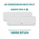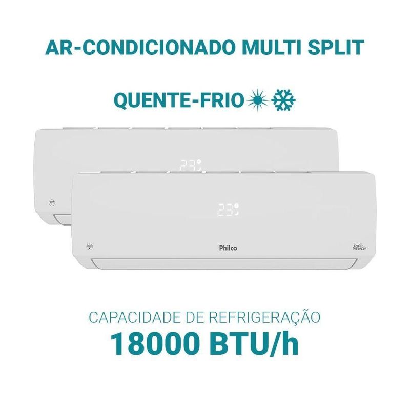 Ar Condicionado Bi Split Philco 18000 BTUs (HW 09K+12K) Quente e Frio Inverter - Climatize dois ambientes simultaneamente com máxima eficiência, silêncio e economiaO Ar Condicionado Bi Split Philco Eco Inverter é a solução técnica avançada para quem busca climatizar dois ambientes distintos utilizando apenas uma unidade externa. O sistema é composto por duas unidades internas de 9000 e 12000 BTUs, permitindo um ajuste preciso da temperatura em diferentes cômodos. Equipado com compressor de tecnologia inverter, o aparelho opera de forma silenciosa e mantém o clima estável com alta eficiência energética, potencializada pelo uso do gás ecológico R32.O modelo oferece versatilidade completa através dos modos de operação para refrigerar, aquecer, desumidificar, ventilar e a função automática. Para o cotidiano, recursos como as funções Dormir, Timer, Oscilar e Turbo garantem o controle exato do fluxo de ar, que conta ainda com quatro níveis de ventilação. Possui filtros laváveis que facilitam a manutenção e garantem a pureza do ar no ambiente. O painel com display de efeito invisível mantém a estética discreta.A tecnologia que equilibra o clima e o silêncio para proporcionar o máximo bem-estar em todos os momentos.Especificações Técnicas:Marca: PhilcoModelo da Evaporadora: 9K PAC9QV - 12K PAC12QVModelo da Condensadora: PAC18QWTecnologia: Split InverterCiclo: Quente e FrioCapacidade: 18000 BTUsVoltagem: 220VConsumo de Energia: 724 kWh/anoVazão de Ar: 850 m³/minNível de Ruído: Evaporadora 45 dB / Condensadora 56 dBGás Refrigerante: R-32Modos de Operação: Refrigerar, Desumidificar, Ventilar, Aquecer e AutomáticoFunções: Dormir, Oscilar, Timer, Turbo, Silêncio, DisplayConectividade Wi-Fi: InclusoDimensões Evaporadora: 90 L x 29 A x 21,5 P cmDimensões Condensadora: 85 L x 56 A x 31,5 P cmPeso Evaporadora: 12 KgPeso Condensadora: 25 KgGarantia: 12 mesesOBS: Kit de instalação não incluso. A instalação deve ser realizada por técnico especializado.