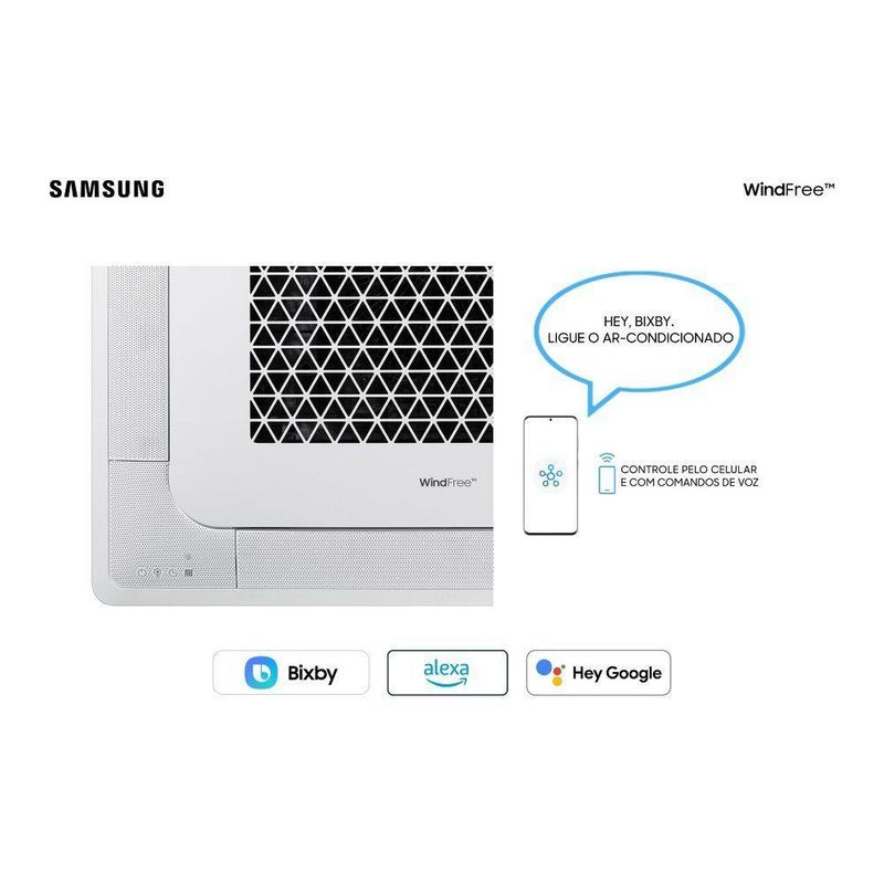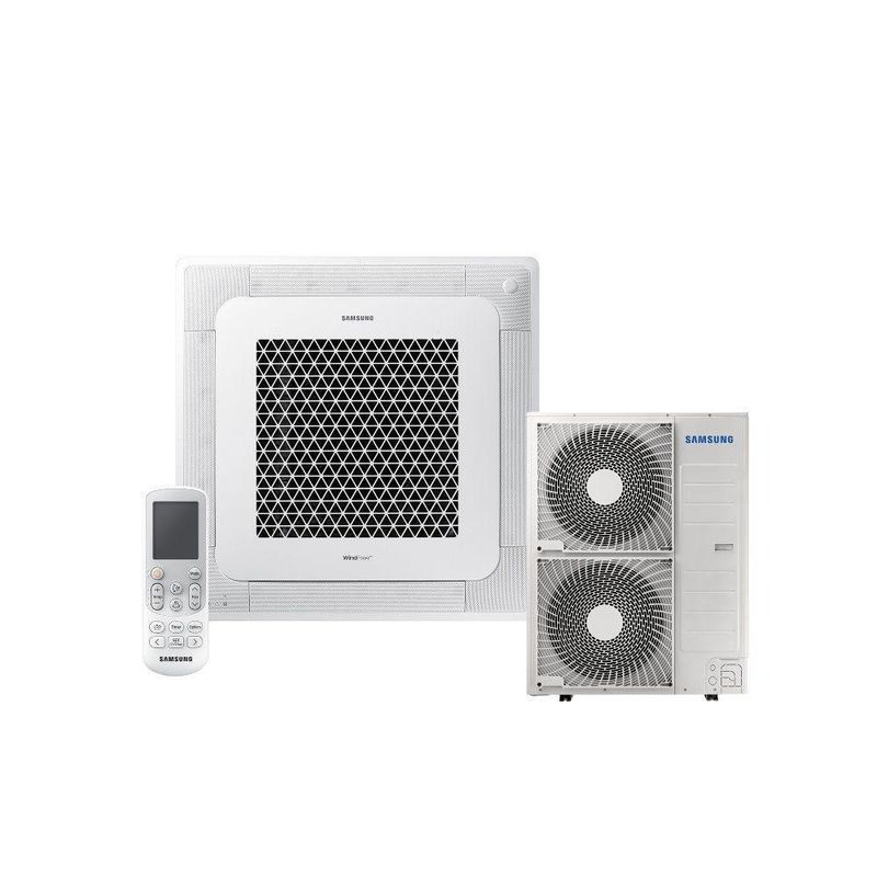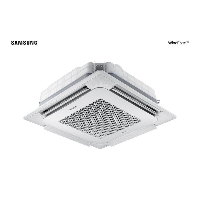 Ar Condicionado Cassete Inverter Samsung WindFree 47000 BTUs Quente e Frio 220V O Ar-Condicionado Cassete Inverter Samsung WindFree 47000 BTUs garante conforto e alta performance. Com quatro modos de operação e três velocidades ajustáveis (High, Mid e Low), oferece climatização personalizada. A tecnologia Turbo resfria rapidamente, enquanto o Modo Dry reduz a umidade. Conta com Energy Saving, Aviso Limpa Filtro e Proteção Anticorrosão, prolongando sua durabilidade. O Modo Sleep assegura noites tranquilas, e o Auto Clean facilita a manutenção. Com Função Swing e filtro de alta qualidade, proporciona ar puro e distribuição uniforme. Perfeito para ambientes amplos e saudáveis! Especificações Técnicas: Marca: Samsung Modelo Condensadora: AC048DXADKG/AZ Modelo Evaporadora: AC048DN4DKG/AZ Voltagem: 220V Tipo: Cassete Tecnologia: Inverter Ciclo: Quente e Frio Cor: Branco Capacidade: 47000 BTUs Consumo Anual: 1866 kWh IDRS Wh Wh: 6.1 Classificação Energética: A Vazão de ar nominal: 1890 m³/h Gás Refrigerante: R32 Nível de ruído (alto, médio, baixo): 45, 40, 35 dBA Corrente de refrigeração (mín, nom, máx): 3,8, 19,4, 27,2 A Corrente de aquecimento (mín, nom, máx): 3,0, 19,5, 32 A Compressor: BLDC Duplo Controle de temperatura: 16°C a 30°C Material da serpentina: Cobre Modos de Operação: Auto, Cool, Fan, Dry Velocidades: High, Mid, Low Funções: Modo Dry, Energy Saving, Tecnologia Turbo, Aviso Limpa Filtro, Proteção anticorrosão, Direcionador horizontal, Modo Sleep, Auto clean, Função Swing, Filtro, WindFree Wi-fi: Sim Garantia: 24 meses e 5 anos no compressor