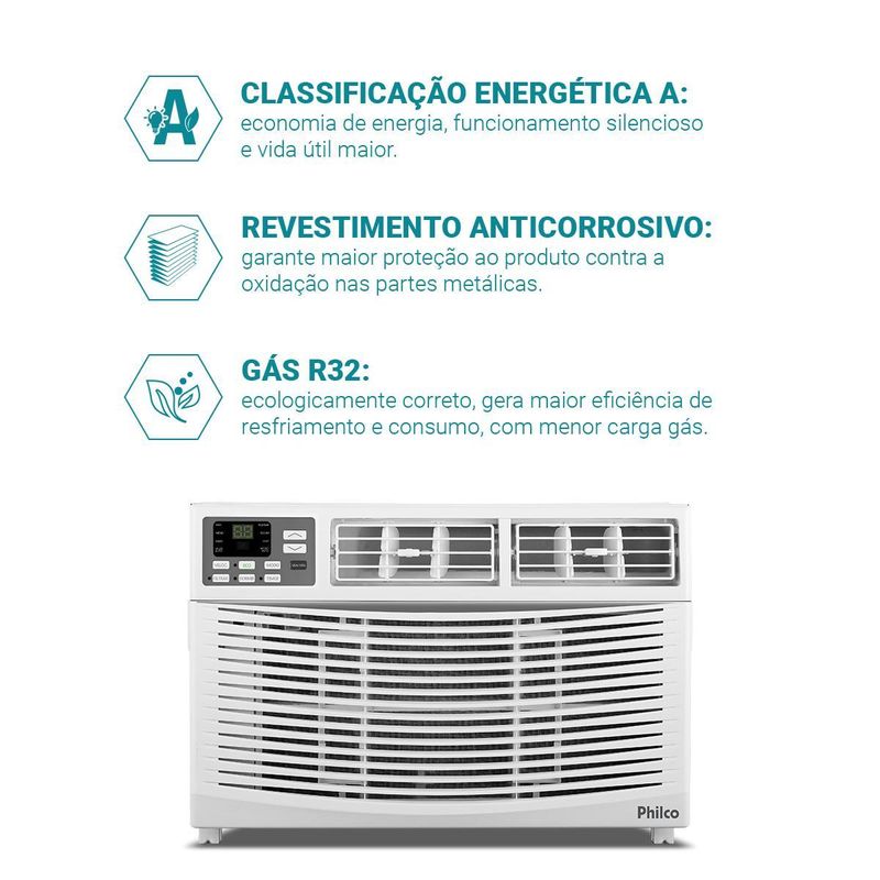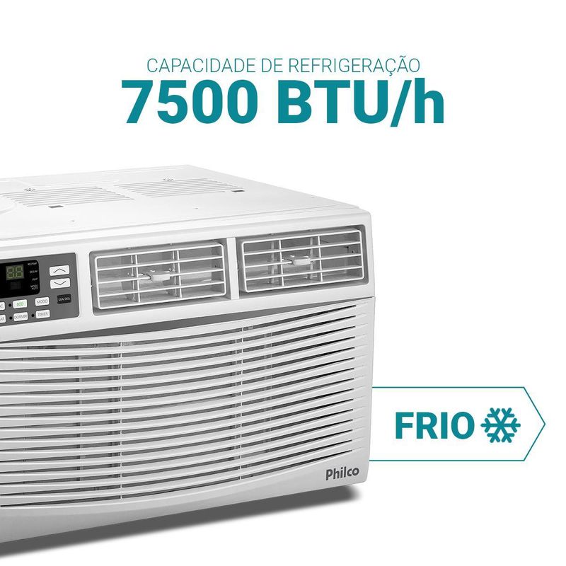 Descubra o Ar-Condicionado Janela 7500BTUs Philco Frio PAJ7FH, ideal para o seu ambiente com a capacidade de 7500 BTU’s, perfeita para espaços menores. O Ar-Condicionado Janela Philco conta com classificação energética A, garantindo desempenho eficiente e economia significativa na sua conta de energia. Já o gás R32, ecologicamente correto, proporciona um resfriamento eficaz com menor impacto ambiental e consumo reduzido.Seu design compacto e de fácil instalação, adapta-se perfeitamente a qualquer ambiente, enquanto o controle remoto digital oferece comodidade e praticidade no ajuste das funções. Além disso, o filtro lavável, antipó e antibacteriano simplifica a manutenção e assegura um ar mais limpo e saudável.Possui ainda serpentina em cobre e a pintura anticorrosiva, que garantem longevidade e proteção contra a oxidação, mantendo o aparelho em ótimo estado por mais tempo. Com funções para resfriar, ventilar e desumidificar, você pode criar um ambiente confortável com facilidade. Os modos de operação: automático e dormir, proporcionam um controle personalizado e eficiente.Experimente a combinação de tecnologia avançada e design inteligente com o Ar-Condicionado Janela 7500BTUs Philco Frio PAJ7FH!• Ciclos de ar Frio• Capacidade de refrigeração 7500 BTU/h• Gás Ecológico R32• Classe "A" em eficiência energética• Controle de temperatura digital (16°C a 31°C)• Modo de operação: Esfriar, Desumidificar, Ventilar e Automático• Função: Dormir, Timer, ECO• Controle de Ventilação (Alto, Médio, Baixo e Automático)• Vazão de ar máxima: 300 m³/h• Potência sonora unidade interna: 58 dB (A) (127V)/60dB (A) (220V)• Potência sonora unidade Externa: 63 dB (A) (127V)/65 dB (A) (220V)• Compressor rotativo• Possui filtro de ar anti-bactéria, anti-fungos• Fácil limpeza do painel e filtro.