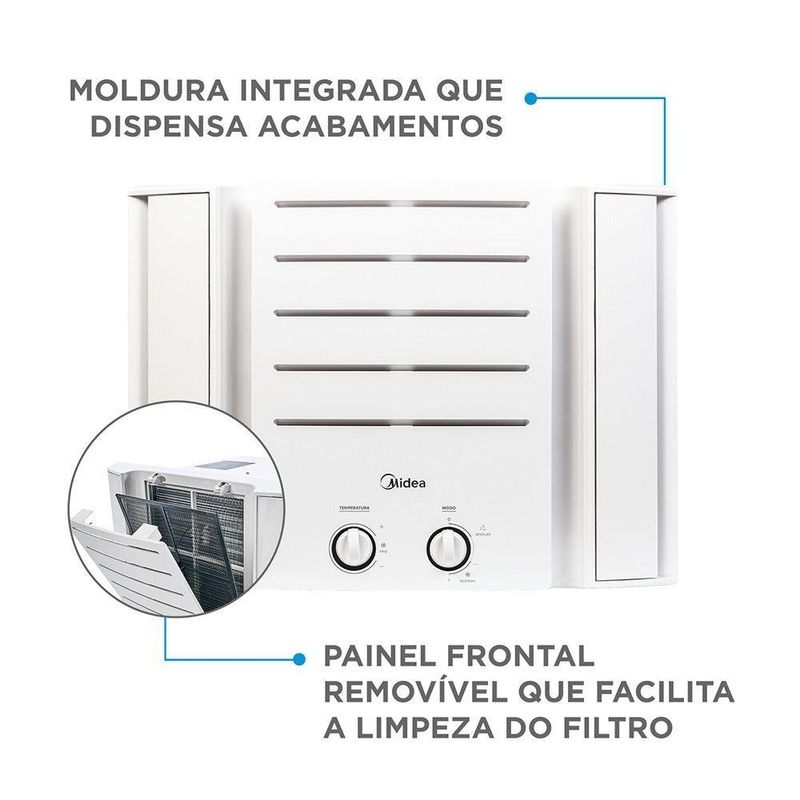 Ar Condicionado Janela Mecânico Midea 10.000 BTUs Frio 127V – praticidade e eficiência para climatização diretaO Ar Condicionado Janela Midea 10.000 BTUs foi desenvolvido para oferecer climatização objetiva e funcionamento simplificado. Com tecnologia convencional e controle mecânico, proporciona ajuste prático das funções para resfriar ambientes de pequeno a médio porte.Com capacidade de 10.000 BTUs e classificação energética A, alia desempenho adequado ao consumo equilibrado de energia (734 kWh/ano). Opera nos modos refrigerar e ventilar, permitindo adaptação conforme a necessidade do ambiente.Utiliza gás refrigerante R-32, que contribui para melhor eficiência térmica, e conta com serpentina com proteção Gold Fin, que auxilia na resistência à corrosão e na durabilidade do equipamento. Sua vazão de ar de 374 m³/min favorece a distribuição uniforme do ar no espaço.Modelo compacto para instalação em janela, reúne funcionalidade e estrutura robusta para uso contínuo.Especificações técnicasMarca: Midea Modelo: QCL108BB Tecnologia: Convencional Ciclo: FrioCapacidade: 10000 BTUs Voltagem: 110VClassificação Energética: DConsumo de Energia: 734 kWh/anoVazão de Ar: 374 m³/hGás Refrigerante: R-32Modos de Operação: Refrigerar e VentilarConectividade Wi-Fi: NãoSelo Inmetro: 012765/2025 Material da Serpentina: Gold FinDimensões do produto: 51 L x 38 A x 51,3 P cm Dimensões da embalagem: 55,8 L x 42 A x 55,6 P cm Peso Produto: 25 Kg Peso Embalagem: 26,3 Kg Garantia: 12 meses