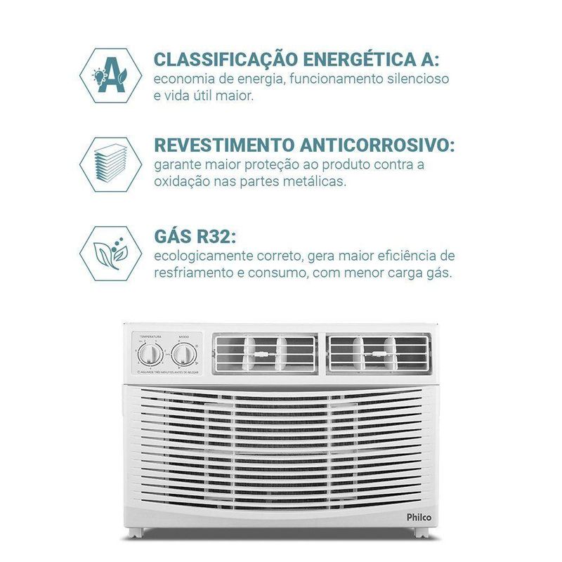 Ar Condicionado Philco BTUs PAJ7FA Serpentina Em Cobre 220vO Ar-Condicionado Philco BTUs PAJ7FA é a escolha ideal para quem busca eficiência, economia e conforto térmico. Equipado com serpentina em cobre, oferece maior durabilidade e melhor desempenho de refrigeração.O gás ecológico R-32 proporciona maior eficiência energética, reduzindo o consumo de energia e oferecendo melhor capacidade volumétrica, além de ser menos agressivo ao meio ambiente.Com a função Oscilar, o aparelho realiza o movimento vertical e horizontal das aletas, garantindo melhor do ar no ambiente (acionamento manual).A função Resfriar permite baixar rapidamente a temperatura do cômodo, e o controle de temperatura digital oferece 14 configurações diferentes (de 16°C a 31°C) para um conforto personalizado.Acompanha manual e certificado de garantia.Recursos PrincipaisGás Ecológico R-32: eficiência energética e menor impacto ambiental.Oscilar: funcionamento vertical e horizontal das aletas para melhor do ar (acionamento manual).Resfriar: permite climatizar o ambiente de forma rápida e eficiente.Serpentina em Cobre: maior durabilidade e resistência.Controle Digital de Temperatura: 14 níveis de ajuste para o conforto ideal.Especificações TécnicasCiclo de Ar: FrioCapacidade de Refrigeração: BTU/hGás Ecológico: R-32Classe de Eficiência Energética: AControle de Temperatura Digital: 16°C a 31°CModos de Operação: Esfriar, VentilarControle de Ventilação: Alto e BaixoVazão de Ar Máxima: 300 m³/hPotência Sonora Unidade Interna: 60 dB (A)Potência Sonora Unidade Externa: 65 dB (A)Compressor: RotativoFiltro de Ar: Antibactéria e AntifungosPainel e Filtro: Fácil limpezaTensão: 220V / 60HzEAN: 7891356121388Dimensões do ProdutoAltura: 33 cmLargura: 57,2 cmComprimento: 38,5 cmPeso: 20,5 kgDimensões com EmbalagemAltura: 38 cmLargura: 54 cmComprimento: 46 cmPeso: 22 kgGarantia1 ano no produto
