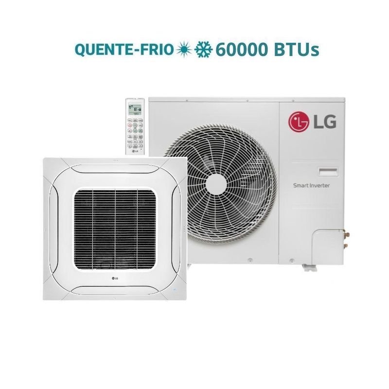Ar Condicionado Split K7 4 Vias LG 60000 BTU QF INV 220V R32 - Climatize Ambientes Amplos com Desempenho e Distribuição Uniforme Projetado para oferecer climatização eficiente em ambientes amplos, este sistema de ar-condicionado cassete 4 vias proporciona distribuição de ar em 360°, ajudando a manter a temperatura mais equilibrada em diferentes áreas do espaço. Seu formato embutido no teto favorece integração ao ambiente, mantendo o visual mais discreto. Com capacidade de 36000 BTUs e ciclo quente e frio, permite adequar a temperatura conforme a necessidade ao longo do ano. A tecnologia Inverter atua com funcionamento progressivo, contribuindo para maior estabilidade térmica e melhor aproveitamento de energia durante o uso contínuo. O equipamento utiliza gás refrigerante R32, associado a bom desempenho térmico e operação eficiente. A saída de ar em quatro direções amplia o alcance do fluxo de ar, favorecendo conforto térmico mais homogêneo no ambiente. Conta ainda com diferentes modos de operação, como resfriamento, aquecimento, ventilação e desumidificação, além de funções que auxiliam no ajuste do funcionamento conforme o momento de uso. Produto com conectividade por Wi-Fi. Desempenho consistente para manter o ambiente sempre agradável. Especificações Técnicas:Marca: LGModelo da Evaporadora: ZTNW60GMLAA.ANWZBR1Modelo da Condensadora: ZTUW60GMLAA.ANWZBR1Tecnologia: InverterCiclo: Quente e FrioCapacidade: 60000 BTUsVoltagem: 220VGás Refrigerante: R-32Conectividade Wi-Fi: InclusoDimensões Evaporadora: 84 L x 28,8 A x 84 P cmDimensões Condensadora: 95 L x 138 A x 33 P cmPeso Evaporadora: 28,5Peso Condensadora: 87,4Garantia: 12 mesesOBS: Kit de instalação não incluso. A instalação deve ser realizada por técnico especializado.