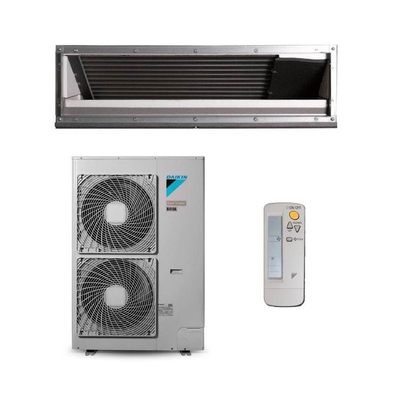 Ar Condicionado Split Duto Inverter Skyair 46.000 BTUs Daikin Quente E Frio 220VAr Condicionado Split Duto Inverter SkyAir 46.000 Btus Daikin Quente e Frio 220vO ar-condicionado Split Duto Inverter Daikin SkyAir é considerado uma solução de climatização eficiente para ambientes comerciais e residenciais de médio a grande porte.Com tecnologia Inverter, garante combinação única de bom desempenho e eficiência energética, oferecendo conforto térmico com economia de energiaPossui design discreto, onde o sistema de duto permite distribuição correta do ar refrigerado ou aquecido para todo o ambiente, proporcionando bem-estar para todos os ocupantes.A unidade externa do sistema (condensadora) é projetada para operar de maneira silenciosa.Além disso, este ar-condicionado possui outras características.Controle Remoto e InteligenteO modelo Daikin SkyAir possui controle remoto intuitivo projetado para facilitar a vida do usuário.Permite a realização de ajustes de configurações de temperatura e outras preferências de forma fácil.Também é compatível com sistemas de automação, podendo ser controlado por meio de dispositivos inteligentes, como tablets ou smartphones.Modos De FuncionamentoEste ar-condicionado oferece diferentes modos de funcionamento como, ventilar, resfriar e aquecer, o que possibilita mais flexibilidade para atender diferentes necessidades de conforto térmico.Essa versatilidade permite que o sistema seja utilizado em todas as estações do ano.TimerA função Timer, presente no sistema, permite que proprietários programem o aparelho para desligar e ligar automaticamente em horários determinados, sendo uma ótima maneira para economizar energia.Alta qualidade e confiabilidadeÉ fabricado com material de qualidade e tecnologia de ponta, conhecido por durabilidade e confiabilidade, garantindo anos de bom desempenho e custo-benefício para o investimento.VoltagemSeu modo de operação é em 220V, sendo compatível com a maioria das instalações elétricas.Apesar disso, é importante checar a compatibilidade para evitar danos para o sistema.Essas características tornam o Split Duto Inverter Daikin SkyAir um aparelho versátil para suas necessidades de climatização.Economia de espaço: pelo fato da sua evaporadora ser posicionada no teto, você terá instalação discreta e eficiente, adequada para espaços limitados.Eficiência energética: sistema projetado com tecnologia Inverter, realiza o ajuste da velocidade do compressor de maneira contínua, para assim atender as demandas de climatização, oferecendo uma maior eficiência energética e economia nos custos.Manutenção simplificada: possui uma menor quantidade de unidades internas e externas, facilitando as manutenções do sistema, que costumam ser mais simples e econômicas.PotênciaSendo adequada para ambientes de médio a grande porte, como escritórios, salas comerciais, restaurantes, lojas e salas de aula.Para ajudar a determinar a capacidade de refrigeração para um espaço específico, utilize a , que com algumas informações como tamanho do ambiente, números de pessoas no local e orientação solar, recomenda a potência ideal para sua instalação!Garantia: para instalação com profissional credenciado Ciclo: Quente e FrioClassificação Inmetro: Classe ATipo de Gás: R-410AGarantia: 24 MesesVOLUMES DE EMBALAGEM: 2Voltagem: 220vSerpentina: CobreCapacidade de Refrigeração (BTU/h): 46.000 BtusCapacidade de Aquecimento (BTU/h): 46.000 BtusFabricante: DaikinClassificação INMETRO: AControle de temperatura: SimGarantia do fornecedor: SimFonte de alimentação: ElétricaMedida Evaporadora (A x L x P) cm: 30 x 140 x 80Medida Condensadora (A x L x P) cm: 134,5 x 90 x 32Gás Refrigerante: R-410aGTIN Vazio Mercado Livre: O produto é um Kit ou PackVoltagem: 220VTipo De Fonte De Alimentação: ElétricaCiclo: Quente e FrioTipo De Ar Condicionado: InverterCódigo Evaporadora: FBQ48AVLCódigo Condensadora: RZQ48AVLCódigo Modelo: RZQ48AVLCódigo Interno: 29482