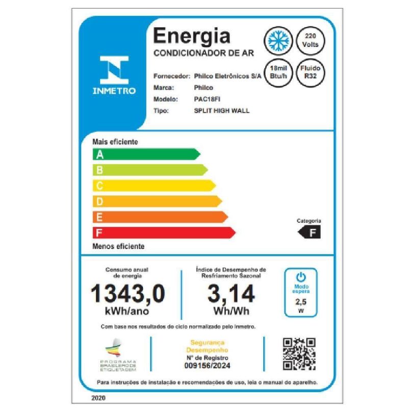 Ar Condicionado Split Philco 18000 BTUs Frio 220V PAC18FIO Ar Condicionado Split Philco 18000 BTUs Frio 220V PAC18FI é a escolha ideal para quem busca conforto, tecnologia e eficiência energética. Utilizando gás ecológico R32, oferece climatização sustentável, enquanto a serpentina de cobre e a pintura anticorrosiva garantem resistência e durabilidade, ideal para áreas sujeitas à maresia.Este modelo conta com modos de operação como dormir, automático, turbo e oscilação, ajustando-se facilmente às suas necessidades. As funções resfriar, ventilar e desumidificar atendem a diferentes estações do ano. O filtro lavável antibacteriano facilita a limpeza diária, enquanto recursos como auto restart e timer garantem praticidade no uso.Escolha o Ar Condicionado Philco PAC18FI para um ambiente confortável, sustentável e eficiente em energia, oferecendo a qualidade e confiabilidade que você merece!Especificações Técnicas: Marca: PhilcoModelo: PAC18FIModelo da Condensadora: 96662579Modelo da Evaporadora: 96662578 Capacidade: 18000 BTUsCiclo: FrioVoltagem: 220VCor: BrancoTecnologia: Split convencionalModos de operação: Esfriar, desumidificar, ventilar e automáticoFunções: Dormir, oscilar, timer, auto restart e botão de emergênciaClassificação Energética: FWifi: NãoMaterial da Serpentina: CobreGás Refrigerante: R32Frequência: 60 HzConsumo kWh: 1343Potência W: 1770Dimensões Evaporadora: 93 L x 21 A x 29 P cmDimensões Condensadora: 87 L x 56 A x 32 P cmDimensões Evaporadora Embalada: 98 L x 27,5 A x 35 P cmDimensões Condensadora Embalada: 88,5 L x 61,5 A x 36 P cmPeso Evaporadora: 10 KgPeso Condensadora: 32 KgPeso Evaporadora Embalada: 12 KgPeso Condensadora Embalada: 34,5 KgGarantia: 12 meses
