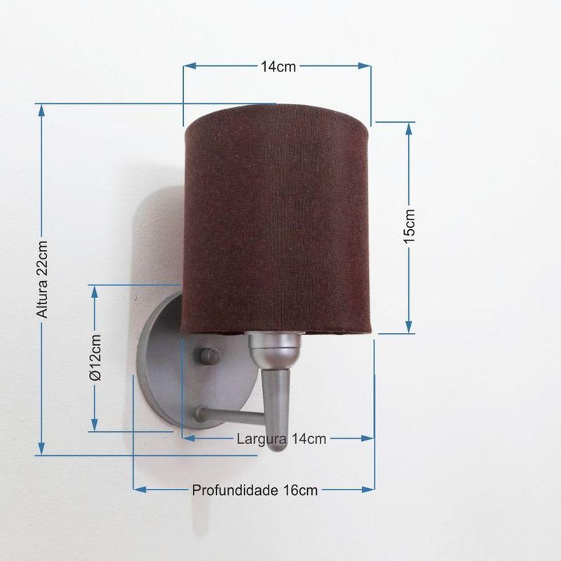 Arandela Cilindrica Md-2009 Base Cinza Cúpula Em Tecido 14x15cm Café - BivoltArandela de parede Cilindrica Md-2009 Base Cinza Cúpula em Tecido 14x15cm CaféAs arandelas Lustres Vivare são elementos versáteis e elegantes que podem transformar qualquer ambiente em um espaço cheio de estilo. Seja para adicionar uma iluminação suave, destacar uma parede ou criar um efeito de luz diferenciado.Dimensão:Cúpula em Tecido: 14x15cmArandela de parede Montada: Altura 22cm Largura 14cm Profundidade 16cmFormato: CilíndricoTamanho: PequenoEspecificação:Material: Cúpula em TecidoEstrutura em AlumínioBase Parede: Diâmetro 11x1,2cmResistente: Á MaresiaVoltagem: 110V/220VLiga e Desliga: NãoTipo de Soquete: E27Lâmpada Utilizada: Led Bulbo Até 16w ou Fluorescente Espiral Até 25w CadaCapacidade de Lâmpadas: 1Observação:Acompanha Lâmpada: NãoPossui Led Integrado: NãoGarantia: 12 MesesManual de Instalação: SimArandela de parede Montada: SimControle de Luminosidade: NãoTipo de Embalagem: CaixaConservação e Manutenção do Produto:A Limpeza deve ser realizada com o produto desligado. Remova o lustre que pode ser lavado com sabão neutro. Nunca utilize produtos químicos e abrasivosDica:Antes de comprar o seu produto verifique as medidas, o local onde pretende instalar e se necessário o serviço de um profissional qualificado.