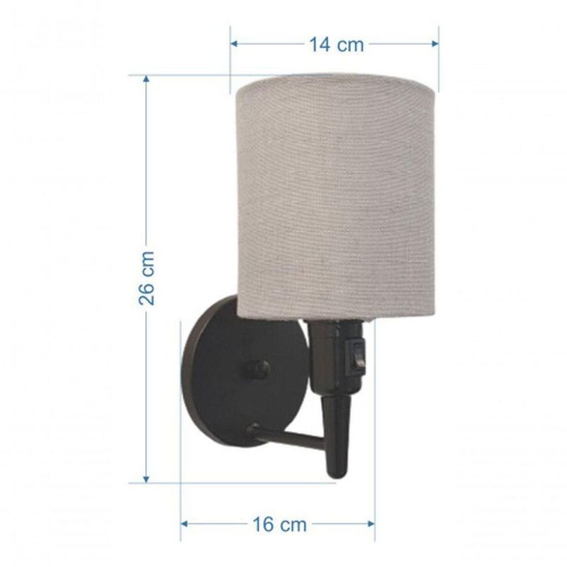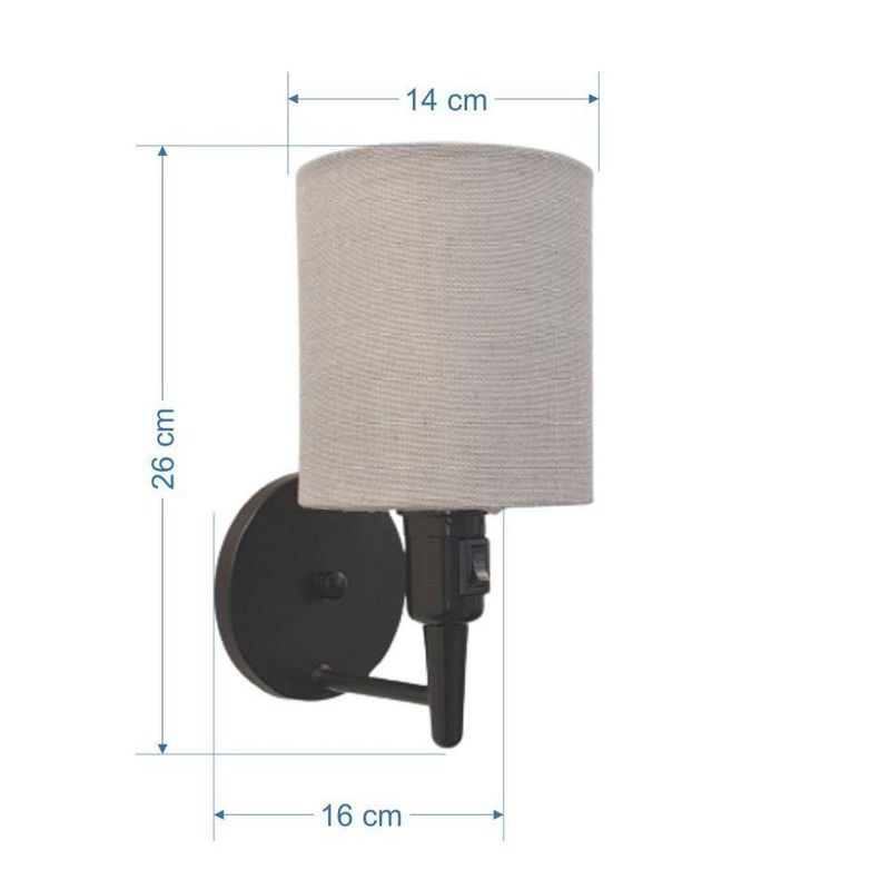 Arandela Cilíndrica Md-2030 Preto Com Liga E Desliga Cúpula Rustico Cinza - BivoltArandela de parede Cilíndrica Md-2030 Preto Com Liga e Desliga Cúpula Rustico Cinza - BivoltAs arandelas Lustres Vivare são elementos versáteis e elegantes que podem transformar qualquer ambiente em um espaço cheio de estilo. Seja para adicionar uma iluminação suave, destacar uma parede ou criar um efeito de luz diferenciado.Dimensão:Cúpula em Tecido: 14x15cmFormato: CilíndricaTamanho: PequenoEspecificação:Material: Cúpula em Tecido, Estrutura em AlumínioBase Parede: Diâmetro 11x1,2cmResistente: Á MaresiaVoltagem: 110V/220VLiga e Desliga: Interruptor no SoqueteTipo de Soquete: E27Lâmpada Utilizada: Led Bulbo até 16w ou Fluorescente Espiral até 25w CadaCapacidade de Lâmpadas: 1Observação:Acompanha Lâmpada: NãoPossui Led Integrado: NãoGarantia: 12 MesesManual de Instalação: SimArandela de parede Montada: SimControle de Luminosidade: NãoTipo de Embalagem: CaixaConservação e Manutenção do Produto:A Limpeza deve ser realizada com o produto desligado. Remova o lustre que pode ser lavado com sabão neutro. Nunca utilize produtos químicos e abrasivosDica:Antes de comprar o seu produto verifique as medidas, o local onde pretende instalar e se necessário o serviço de um profissional qualificado.