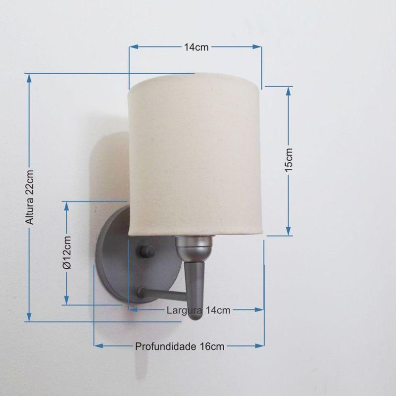 Arandela Cilíndrica Vivare Md-2009 Base Cinza Cúpula Em Tecido - Bivolt Cinza-algodão-crú 127/220vArandela de parede Cilíndrica Vivare Md-2009 Base Cinza Cúpula em TecidoAs arandelas Lustres Vivare são elementos versáteis e elegantes que podem transformar qualquer ambiente em um espaço cheio de estilo. Seja para adicionar uma iluminação suave, destacar uma parede ou criar um efeito de luz diferenciado.Dimensão:Cúpula em Tecido: 14x15cmArandela de parede Montada: Altura 22cm Largura 14cm Profundidade 16cmFormato: CilíndricoTamanho: PequenoEspecificação:Material: Cúpula em TecidoEstrutura em AlumínioBase Parede: Diâmetro 11x1,2cmResistente: Á MaresiaVoltagem: 110V/220VLiga e Desliga: NãoTipo de Soquete: E27Lâmpada Utilizada: Led Bulbo Até 16w ou Fluorescente Espiral Até 25w CadaCapacidade de Lâmpadas: 1Observação:Acompanha Lâmpada: NãoPossui Led Integrado: NãoGarantia: 12 MesesManual de Instalação: SimArandela de parede Montada: SimControle de Luminosidade: NãoTipo de Embalagem: CaixaConservação e Manutenção do Produto:A Limpeza deve ser realizada com o produto desligado. Remova o lustre que pode ser lavado com sabão neutro. Nunca utilize produtos químicos e abrasivosDica:Antes de comprar o seu produto verifique as medidas, o local onde pretende instalar e se necessário o serviço de um profissional qualificado.