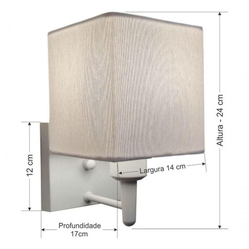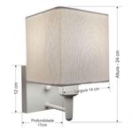 Arandela Quadrada Md-2006 Branco Cúpula Em Tecido Branco - BivoltArandela de parede Quadrada Md-2006 Branco Cúpula em Tecido Branco - BivoltAs arandelas Lustres Vivare são elementos versáteis e elegantes que podem transformar qualquer ambiente em um espaço cheio de estilo. Seja para adicionar uma iluminação suave, destacar uma parede ou criar um efeito de luz diferenciado.Dimensão:Cúpula em Tecido: 15x14x14cmArandela de parede Montada: Altura 24cm Largura 14cm Profundidade 17cmFormato: QuadradoTamanho: PequenoEspecificação:Material: Cúpula em TecidoEstrutura em AlumínioBase Parede: Quadrado 12x12x2cmResistente: Á MaresiaVoltagem: 110V/220VLiga e Desliga: NãoTipo de Soquete: E27Lâmpada Utilizada: Led Bulbo Até 16w ou Fluorescente Espiral Até 25w CadaCapacidade de Lâmpadas: 1Observação:Acompanha Lâmpada: NãoPossui Led Integrado: NãoGarantia: 12 MesesManual de Instalação: SimArandela de parede Montada: SimControle de Luminosidade: NãoTipo de Embalagem: CaixaConservação e Manutenção do Produto:A Limpeza deve ser realizada com o produto desligado. Remova o lustre que pode ser lavado com sabão neutro. Nunca utilize produtos químicos e abrasivosDica:Antes de comprar o seu produto verifique as medidas, o local onde pretende instalar e se necessário o serviço de um profissional qualificado.
