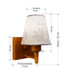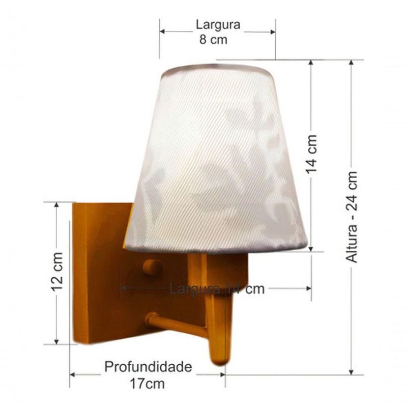 Arandela Quadrada Md-2034 Cobre Cúpula Em Tecido Cone Renda Branca - BivoltArandela de parede Quadrada Md-2034 Cobre Cúpula em Tecido Cone Renda Branca - BivoltAs arandelas Lustres Vivare são elementos versáteis e elegantes que podem transformar qualquer ambiente em um espaço cheio de estilo. Seja para adicionar uma iluminação suave, destacar uma parede ou criar um efeito de luz diferenciado.Dimensão:Cúpula em Tecido: 14x07x14cmArandela de parede Montada: Altura 24cm Largura 14cm Profundidade 17cmFormato: Quadrado / ConeTamanho: PequenoEspecificação:Material: Cúpula em TecidoEstrutura em AlumínioBase Parede: Quadrado 12x12x2cmResistente: Á MaresiaVoltagem: 110V/220VLiga e Desliga: NãoTipo de Soquete: E27Lâmpada Utilizada: Led Bulbo Até 16w ou Fluorescente Espiral Até 25w cadaCapacidade de Lâmpadas: 1Observação:Acompanha Lâmpada: NãoPossui Led Integrado: NãoGarantia: 12 MesesManual de Instalação: SimArandela de parede Montada: SimControle de Luminosidade: NãoTipo de Embalagem: CaixaConservação e Manutenção do Produto:A Limpeza deve ser realizada com o produto desligado. Remova o lustre que pode ser lavado com sabão neutro. Nunca utilize produtos químicos e abrasivosDica:Antes de comprar o seu produto verifique as medidas, o local onde pretende instalar e se necessário o serviço de um profissional qualificado.