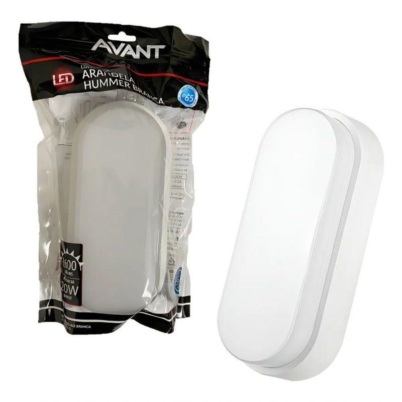 Arandela Tartaruga Hummer Branca Avant 20w 6500kArandela Tartaruga Led Branca Ip65 20w Branco Frio 6500k AvantA arandela LED Hummer EVO é indicada para ambientes externos, residenciais ou comerciais como rampas de acesso, garagens, escadas, varandas, muros, etc. Corpo em plástico ABS e difusor em polipropileno. Índice de proteção IP65.Vida útil de 15 mil horas (L70)Tensão nominal: 100V - 240V Bivolt AutomáticoPotencia nominal: 20WCorrente nominal: 127V – 270 mA / 220V - 180 mAFator de potência: 0,50Frequência: 50-60HzEficiência luminosa: 80 Im/WIRC: 70Lumens: 1600 lmÂngulo de abertura: 120°Dimensões: 195 (C) mm x 90 (L) mm x 50 (A) mmPeso: 110 gNÃO PERMITE DIMERIZAÇÃO.