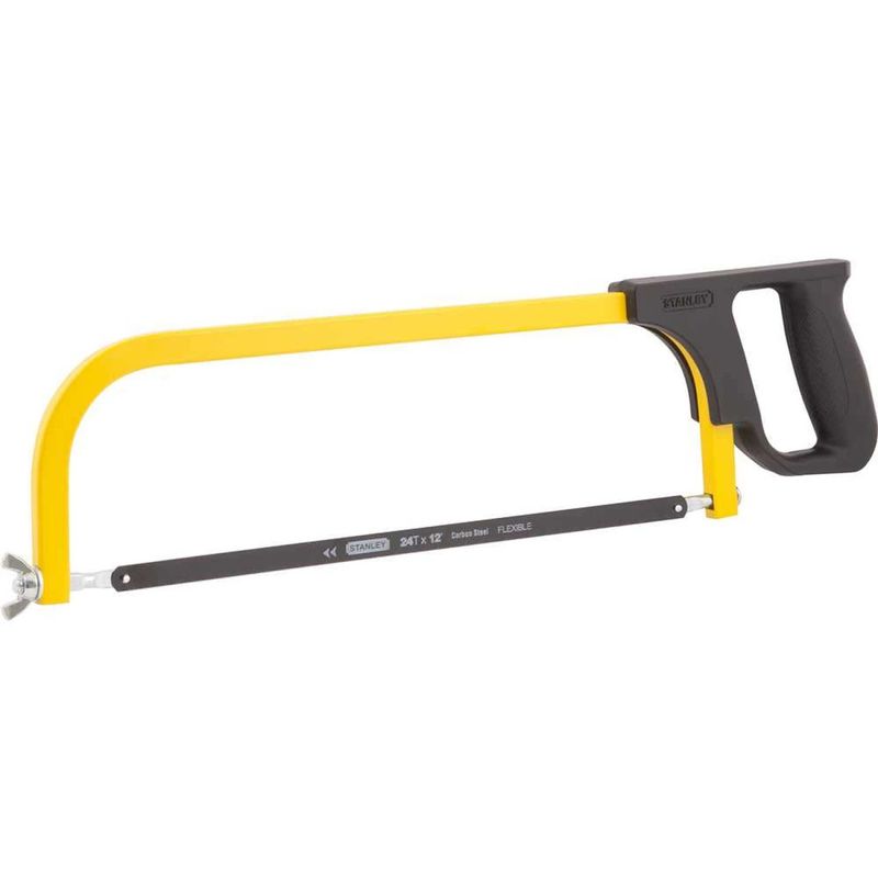 Arco de Serra, 12", 20-206, Stanley OstenVonder - Conteúdo da embalagem: 1 Arco de serra fixo. Aplicação: Para cortes em madeiras, plásticos e metais. Destaques: Possui corpo tubular em aço pintado e resistente, cabo plástico anatômico com textura patenteada que permite maior comodidade e melhor agarre ao operador, além de punho fechado, que oferece maior proteção para as mãos. Referência: 20206 Garantia - E (CDC): Garantia legal: 90 dias Material do cabo: Plástico Massa aproximada (peso): 0,42 kg Material da estrutura do arco de serra: Aço carbono Tipo de ajuste do arco de serra: Fixo Medida da lâmina do arco de serra: 12" Tipo de cabo: Fechado Modelo: 20-206 Destaques Comercial: Corpo tubular em aço pintado, cabo plástico anatômico com textura patenteada e punho fechado para maior conforto e proteção. Aplicação Comercial: Para cortes em madeiras, plásticos e metais. Características Gerais do Produto: Garantia: • 3 Meses