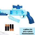 Arma Bolas Sabão Maquina Eletrica Brinquedo Lança Bolhas AzulPistola Bolas Sabão Máquina Elétrica Brinquedo Lança BolhasInspirado no gatilho de bolha em forma de rifle, é o brinquedo de máquina de bolhas mais inovador e que mais repercute em mídias de streaming como TikTok e Youtube!Com uma alta potência, com mais de 1000 bolhas por minuto, a Pistola de Bolhas Fold será diversão garantida para você e seu pequeno(a)!A máquina de bolhas para crianças é feita de plástico ABS, não tóxico e ecológico, sem bordas afiadas, design à prova de vazamento e solução de bolhas sem cheiro ruim. Crianças totalmente seguras enquanto brincam!O anel de vedação de silicone à prova de vazamentos garante um encaixe perfeito com a pistola e os refis de sabão. Para funcionar é necessário 4 pilhas AA;===========================================================================================Especificações técnicas:ABS de alta qualidadeEmite Luzes enquanto solta as bolhasMais de mil bolhas por minutoFácil montagemLivre de vazamentosAcompanha 2 refis de 50mlTamanho do produto: 41 x 8 x 19 cmItens Inclusos na Embalagem:- 01x Pistola Lança Bolhas