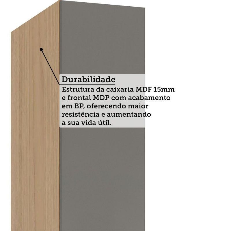 Armário Aéreo 20cm 1 Porta Essenza Luciane Móveis Andorra/cinza PuroArmario Aereo 20cm 1 Porta Essenza Luciane MoveisO Armario Essenza chega para redefinir o conceito de elegancia e funcionalidade na sua cozinha, unindo um design contemporaneo a materiais de altissima qualidade. Projetado para quem busca um ambiente organizado e esteticamente impecavel, destacando-se pela robustez de sua estrutura e pelo acabamento minimalista que se adapta perfeitamente aos mais variados projetos de interiores. O grande diferencial deste modelo esta na tecnologia aplicada aos seus componentes internos e externos. Fabricado com caixaria em MDF de alta resistencia e acabamento em BP, oferecendo durabilidade superior, conta com dobradicas de 35mm com sistema Slow Motion, que garante um fechamento suave e silencioso e puxadores em aluminio no modelo Gola. E a escolha ideal para quem nao abre mao de tecnologia e beleza em cada detalhe da casa. Caracteristicas: Corpo/Caixaria: MDF Frontais: MDP Acabamento: BP Puxadores: Aluminio Gola Pes: P S Prateleiras: 1 Portas: 1 Dimensoes do produto: Altura: 85 cm Largura: 20 cm Profundidade: 35 cm Peso: 10,2 kg Garantia 3 meses direto do fabricante. Informacoes complementares: Fique de olho: siga sempre as orientacoes do fabricante e utilize seu produto de acordo com o manual. A empresa nao se responsabiliza pelo mau uso do produto, o que pode causar perda da garantia. Certifique se que seus dados estejam atualizados, como endereco e um telefone valido. A entrega sera realizada no terreo, sendo assim em predios o deslocamento da mercadoria, subir escadas, elevadores ou transporte por guincho para apartamentos fica sob responsabilidade do comprador. Todas as nossas entregas sao realizadas em horario comercial, nao sendo possivel fazer agendamento, sugerimos acompanhar o rastreio do pedido e ter alguem para receber no endereco indicado. Nao nos encarregamos por montagens, desmontagens e outras instalacoes, serao de responsabilidade do comprador.
