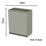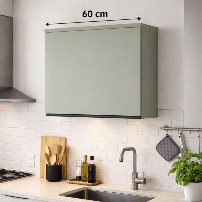 Armário Aéreo Alto Da Casa 600mm CordaO Armário de Parede para Cozinha Planejado Moderno com Altura de 60 cm é a escolha perfeita para quem busca organização, praticidade e um design sofisticado. Compacto e funcional, oferece armazenamento eficiente para utensílios, mantimentos e objetos do dia a dia, valorizando o ambiente com elegância e aproveitamento inteligente do espaço vertical.Fabricado em MDP com espessura de 1,5 cm, com tampo superior em MDP de 2,5 cm, garante resistência, durabilidade e segurança no uso diário. Conta com dobradiças tipo caneco de 3,5 cm com fechamento automático por amortecimento anti-impacto, proporcionando abertura e fechamento suaves, silenciosos e maior conforto no manuseio. O perfil puxador em alumínio com ponteiras em ABS completa o visual moderno e sofisticado do móvel.O produto acompanha cantoneiras metálicas e parafusos para fixação segura na parede. Todos os padrões recebem sete camadas de pintura UV, assegurando acabamento uniforme, maior proteção contra desgaste e visual elegante.Indicado para cozinhas planejadas ou compactas, áreas gourmet, lavanderias e ambientes que exigem organização eficiente com otimização de espaço.Cuidados e limpeza: limpar com pano levemente umedecido e pano seco. Evitar produtos abrasivos ou solventes químicos. Garantir instalação correta para segurança e estabilidade do armário.Ficha TécnicaTipo: Armário de parede / armário aéreoAltura: 60 cmLargura: conforme padrão do fabricanteQuantidade de portas: 1Tipo de porta: ConvencionalMaterial da estrutura: MDPEspessura da estrutura: 1,5 cmMaterial do tampo superior: MDPEspessura do tampo superior: 2,5 cmDobradiças: Tipo caneco 3,5 cm com fechamento automático e amortecimentoPuxador: Perfil em alumínio com ponteiras em ABSAcabamento: Pintura UV com 7 camadasFixação: Parede, com cantoneiras metálicas e parafusosIndicação de uso: Cozinha, área gourmet e lavanderiaConteúdo da embalagem: 1 armário e kit de ferragensMontagem: Necessita montagem e instalação na paredeDestaques- Estrutura em MDP resistente- Dobradiças com fechamento suave e anti-impacto- Perfil puxador em alumínio- Fixação segura na parede- Pintura UV durável e acabamento sofisticado- Design moderno, funcional e eleganteTipo de móveis de cozinha: Armário | Requer montagem: Sim | Cor: Corda