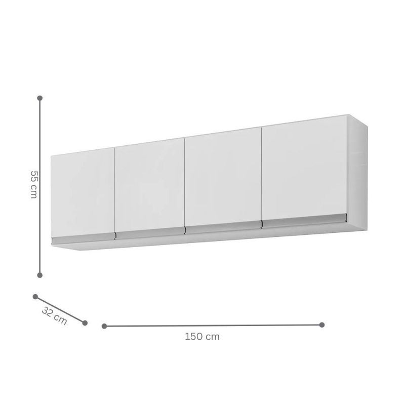 Armario Aereo California 4pts 1,50m BrancoEssea armario aereo para cozinha conta com amplo espaço interno e ótimas divisões para melhor e maior organização, possui um lindo design proporcionando modernidade ao ambiente O armário possui quatro portas e quatro prateleiras para acomodar seus alimentos ou objetos. Produzidos em MDP, com acabamento em pintura UV proporcionando mais durabilidade e resistência. Dimensão do Armário: Altura: 55 cm Largura: 150 cm Profundidade: 32 cm Informação do Armário: Cor: branco Prateleiras: Sim Porta: Sim bater Gavetas: Não Nichos: Não Pés: Não Pintura em UV Material Principal: MDP Itens Inclusos: 1 Armário Aéreo Manual de Montagem Kit completo para montagem e manual de instruções Garantia: 3 meses contra defeito de fabricação Informações Adicionais: - Fotos meramente ilustrativas do produto no ambiente. - Os objetos que ambientam as fotos não acompanham o produto; - Verificar descrição e tamanho do produto antes da compra. - Avaliar a mercadoria no ato do recebimento e recuse em caso de divergência ou avarias. - Mantenha as informações de contato e endereço de entrega atualizados para entrarmos em contato caso necessário. - Limpar com flanela ou pano macio seco, não utilizar produtos abrasivos, desengordurantes, álcool ou solvente. Não expor o produto diretamente à luz solar e à umidade. * Sugerimos a contratação de um montador profissional para a montagem do produto. Não nos responsabilizamos por avarias causadas no ato da montagem. * Não nos responsabilizamos pela montagem e desmontagem do produto no ato da entrega e devolução, assim como os custos gerados nestas situações. * A transportadora entregará o produto no andar térreo do endereço de entrega. * Não nos responsabilizamos por subir escadas, corredores e elevadores ou transporte por guincho em apartamentos. Inclui manual de montagem: Sim | Requer montagem: Sim | País de Origem: Brasil | Duração da Garantia: 3 Meses | Montagem: Necessita Montagem | CORES DO PRODUTO (FILTRO DE CORES): Branco | LARGURA DO PRODUTO (CM): 32 | PRODUTO PRECISA DE MONTAGEM?: Sim, a montagem é simples mas sugerimos a contratação do nosso serviço de montagem (para os CEPs em que o serviço está disponível) ou de algum profissional experiente de sua preferência | COR PREDOMINANTE: Branco | INSTRUÇÕES/CUIDADOS: Limpar com pano macio e seco, não utilizar produtos abrasivos. | MODELO: Armario Aereo | ALTURA DO PRODUTO (CM): 55 | DESCRIÇÃO DO TAMANHO: 55x32x150 | PESO DO PRODUTO (KG): 27 | ESTADO DE ORIGEM: PR | ALTURA DO PRODUTO COM EMBALAGEM (CM): 10 | LARGURA PRODUTO COM EMBALAGEM (CM): 40 | COMPRIMENTO PRODUTO COM EMBALAGEM (CM): 150 | PESO PRODUTO COM EMBALAGEM (KG): 27 | MARCA: CASAH | COMPRIMENTO DO PRODUTO (CM): 150 | MATERIAL PRINCIPAL: MDP | TIPOS DE MÓVEIS DE COZINHA: Armario | CONTEÚDO DA EMBALAGEM: Um armario de cozinha suspenso | MATERIAL PARA FILTRO: MDP
