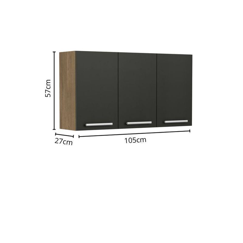 Armário Aéreo Com 3 Portas Grafite Samba Bertolini Grafite/carvalhoArmário Aéreo com 3 Portas da Linha Samba BertoliniDesenvolvido para um público que tem necessidade de otimizar ao máximo o espaço de sua casa sem perder qualidade. Os móveis podem ser montados e desmontados de acordo com suas novas condições. Com manutenção simples, variedades de opções e extremamente funcional tem o corpo e portas em MDP de 15mm e o tampo em MDP de 25mm que garantem robustez ao móvel. Bordas em PVC para um acabamento perfeito e puxadores com haste em alumínio e ponteira em ABS, os pés são de madeira com regulagem de altura.CARACTERÍSTICAS:- Marca: Bertolini Móveis- Linha: Samba- Condição do Item: Novo- Material: 100% Madeira- Tipo do Móvel: Armário Aéreo- Acabamento: Finish Foil (FF)- Puxadores: Haste em alumínio e ponteira em ABS- Quantidade de Portas: 3- Tipo da Dobradiça da Porta: Metálica- Quantidade de Volumes: 1- Dimensões da Embalagem: 12 x 36 x 119 cm- Peso da Embalagem: 22 kgDIMENSÕES DO PRODUTO MONTADO:- Altura: 57 cm- Largura: 105 cm- Profundidade: 27 cmPeso: 20,97 kgINFORMAÇÕES COMPLEMENTARES:- Todos os produtos anunciados pela Bertolini Móveis são novos, acompanham nota fiscal e termo de garantia.- As imagens deste anúncio são meramente ilustrativas e a cor pode variar de acordo com as configurações do seu monitor ou dispositivo móvel assim como a iluminação do ambiente.- Os itens de decoração utilizados nas imagens ambientadas não estão inclusos.- A montagem e instalação do produto é de responsabilidade do consumidor.- Acompanha manual de instruções para montagem.- Os produtos Bertolini Móveis possuem 12 (doze) meses de garantia contra defeitos de fabricação.LIMPEZA E CONSERVAÇÃO:- Limpar somente com pano úmido e não usar produtos abrasivos.DÚVIDAS FREQUENTES:- Como sei o valor do Frete?O Frete é calculado automaticamente tendo por base as dimensões e pesos dos produtos bem como o CEP de destino do consumidor.- Em quanto tempo receberei meu pedido?O prazo de entrega do seu pedido é calculado automaticamente considerando o CEP de destino e as transportadoras disponíveis para sua região. A Bertolini Móveis possui vários transportadoras parceiras e trabalhamos para que seu pedido chegue o mais breve possível.- Posso agendar a entrega?Atualmente não existe a possibilidade de agendamento pois o roteiro de entregas é montado pelas transportadoras parceiras.- Posso rastrear a entrega?Sempre que possível o link de rastreio é gerado pela transportadora parceira e será disponibilizado através de mensagem ou e-mail, algumas transportadoras podem não disponibilizar o rastreamento das entregas.- Vocês tem o serviço de montagem?A Bertolini Móveis não possui serviço de montagem. Todos nossos produtos são enviados com o manual de instruções para realização da montagem.Caso você ainda tenha dúvidas sobre nossos produtos por favor utilize o campo de Perguntas que teremos muito prazer em ajudar. Condição do Item: Novo | Tipo do Móvel: Armário Aéreo | Material: Madeira | Peso Móvel Montado: 20.9 | Linha: lavanderia área de serviço garagem | Altura Móvel Montado: 57 | Largura Móvel Montado: 105 | Profundidade Móvel Montado: 27 | Quantidade de Volumes: 1 | Acabamento: Finish Foil (FF) | Tipo dos Puxadores: Haste em alumínio e ponteira em ABS | Tipo das Dobradiças: Metálica | batteries_required: Não | Requer Montagem?: Sim | bullet_point0: Fabricado em MDP: portas e estrutura 15mm. | Quantidade de Portas: 3 | bullet_point1: Corrediças telescópicas e puxadores com haste em alumínio e ponteira em ABS. | bullet_point2: Detalhes com borda em PVC. | external_testing_certification: Não se aplica | included_components: Prateleiras | is_assembly_required: Sim | is_fragile: Não | item_depth_width_height: 27 x 57 x 105 | Recomendações de Limpeza: Limpar somente com pano úmido, não usar produtos abrasivos. | manufacturer: Bertolini | model_number: 8070 | number_of_items: 1 | part_number: 8070 | recommended_uses_for_product: Louça | special_feature: Anti-tombamento | Inclui Manual de Montagem: Sim Cor: Grafite/Carvalho
