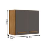 Armário Aéreo Cristal 2 Portas Arte Móveis Cinamomo/grafiteO armário Aéreo Cristal é um produto prático e funcional, perfeito para guardar seus utensílios domésticos, deixando sua cozinha muito mais organizada, proporcionando maior comodidade e praticidade. Possui uma porta com pistão e nicho, bom gosto e qualidade com um toque de clareza.Altura: 58 cmLargura: 70 cmProfundidade: 32 cmPeso: 15 KgGarantia: 3 MesesMaterial da estrutura: MDP/MDFAcabamento: Pintura U.VNúmero de Portas: 02Tipo de Porta: BaterDobradiças MetálicasPossui Prateleiras: Sim 01Possui NichoNecessita de montagem? Sim, sugerimos a contratação de algum profissional experiente de sua preferênciaRecomendações de limpeza e manutenção: Limpar com pano umedecido, não aplicar produtos químicos.Atenção:Não oferecemos serviço de montagem, mas todos os produtos possuem manual de montagem com o passo a passo. Recomendamos contratar um profissional de montagem.Pode existir diferença de tonalidade entre a foto e o produto devido ao tratamento da imagem e à calibração de cores do monitorItens que decoram o ambiente nas imagens não acompanham o produto.
