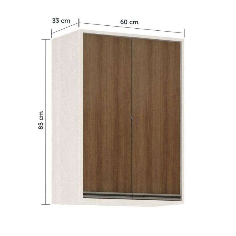 Armário Aéreo De Cozinha 60 Cm 2 Portas Linea Luciane Pátina Ff/avelã FfO Armario Aereo com 60cm Linea foi desenvolvido aliando beleza e praticidade ao seu ambiente. Conta com 2 portas de abrir, 2 prateleiras internas, puxador em aluminio gola. Acompanha sistema para fixacao na parede. Caracteristicas: Corpo/Caixaria: MDP Patina FF (Finish Foil) Frontais: Avela FF (Finish Foil) Frontais: Mocca Laca Dobradicas: Metalicas Ø35 mm Slowmotion (com amortecedor) Puxadores: Aluminio Gola - Inox Portas: 2 Prateleiras: 2Dimensoes do produto Altura: 85 cm Largura: 60 cm Profundidade: 33 cm Peso: 17,7 kg Garantia de 3 meses direto do fabricante.#8195; Informacoes complementares: Fique de olho: siga sempre as orientacoes do fabricante e utilize seu produto de acordo com o manual. A empresa nao se responsabiliza pelo mau uso do produto, o que pode causar perda da garantia.#8239; Certifique se que seus dados estejam atualizados, como endereco e um telefone valido. A entrega sera realizada no terreo, sendo assim em predios o deslocamento da mercadoria, subir escadas, elevadores ou transporte por guincho para apartamentos fica sob responsabilidade do comprador. Todas as nossas entregas sao realizadas em horario comercial, nao sendo possivel fazer agendamento, sugerimos acompanhar o rastreio do pedido e ter alguem para receber no endereco indicado. Nao nos encarregamos por montagens, desmontagens e outras instalacoes, serao de responsabilidade do comprador.